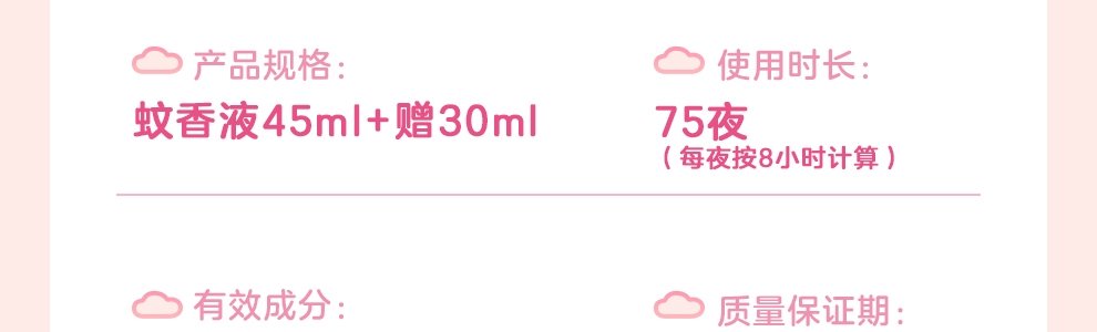商品名称:彩虹乖乖 蚊香液直插器超值装 45ml*1瓶+30ml*1瓶+1器