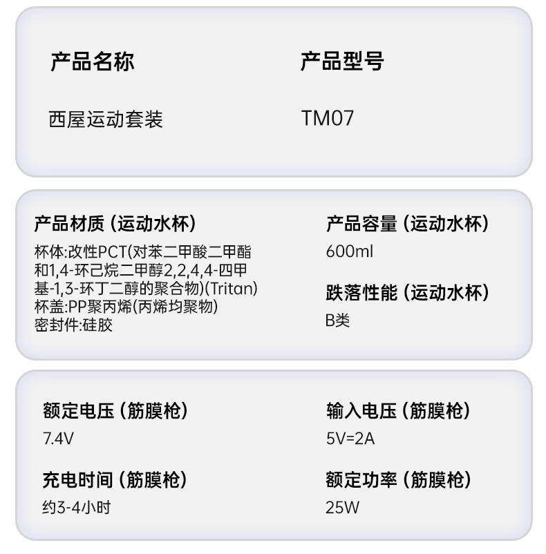 商品名称:Westinghouse/西屋运动套装(筋膜枪+600毫升运动水杯)TM-07