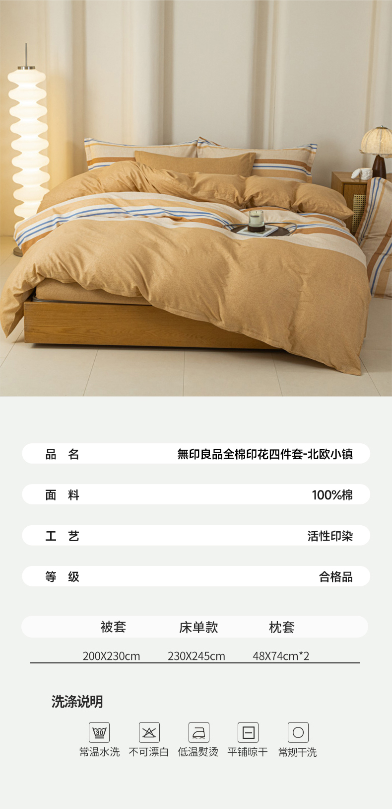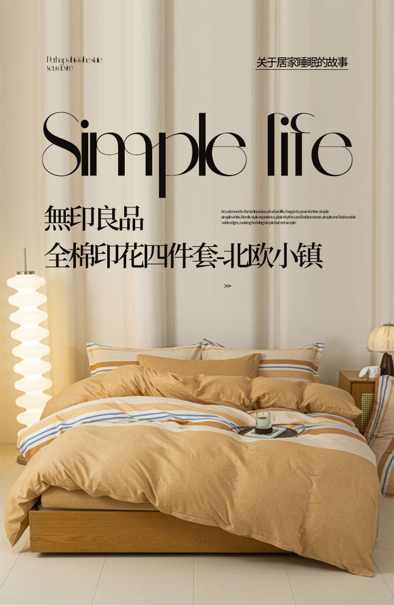 商品名称:无印良品北欧小镇全棉印花床品四件套200*230cm