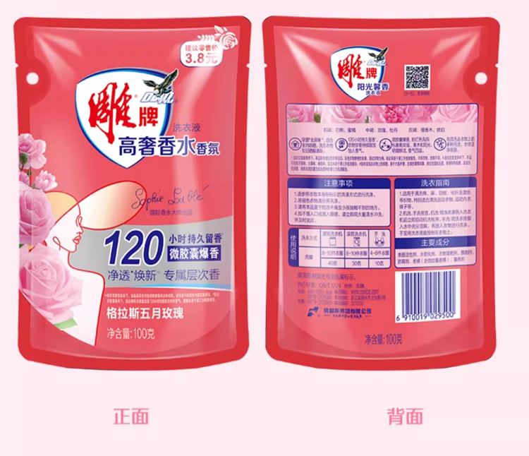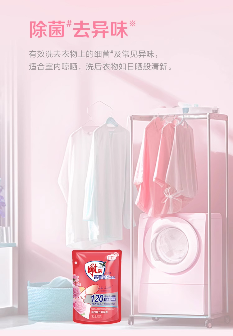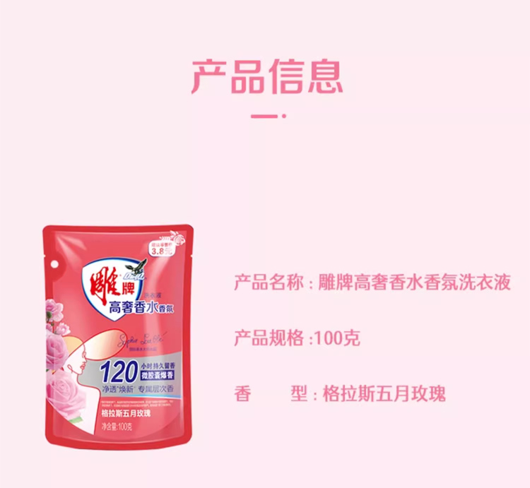 商品名称:雕牌高奢香水香氛洗衣液100g*10袋(五月玫瑰)