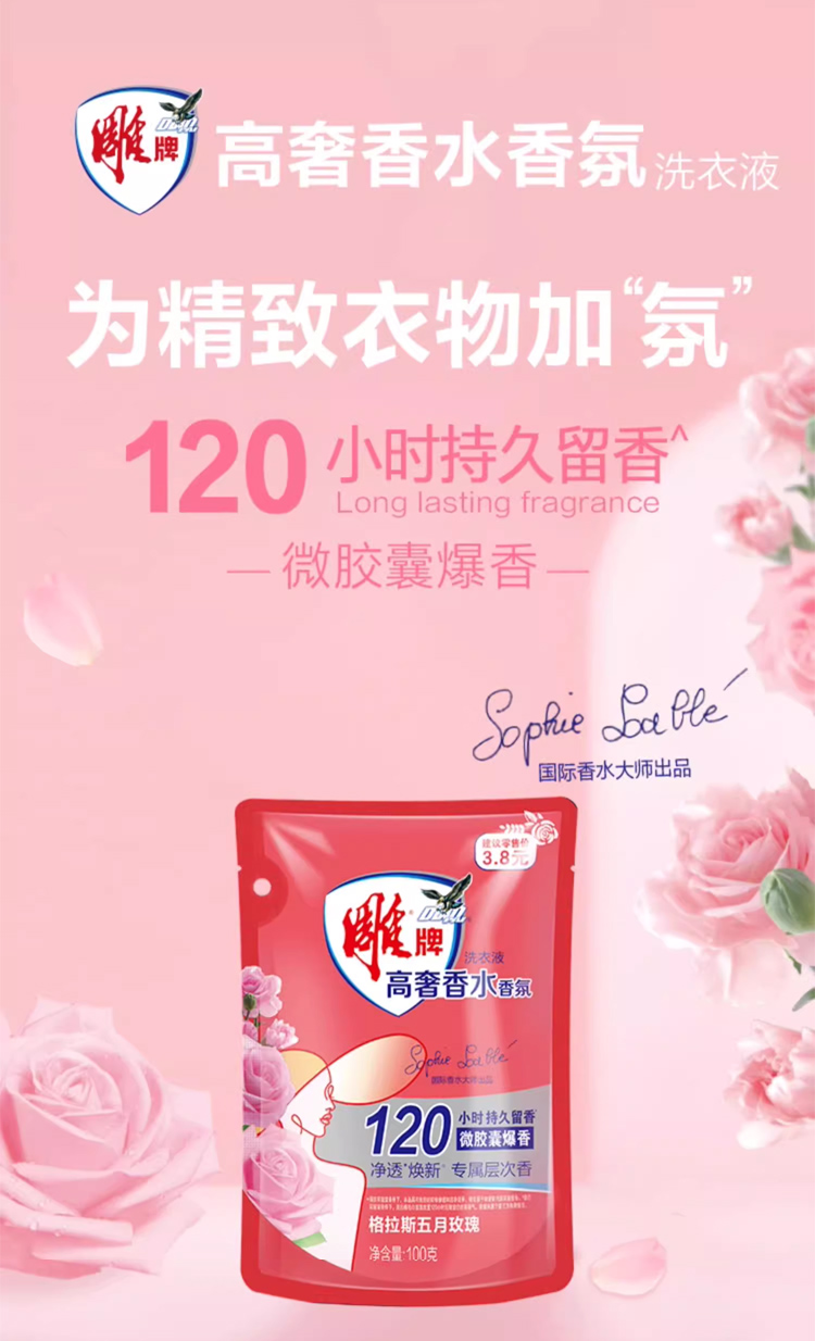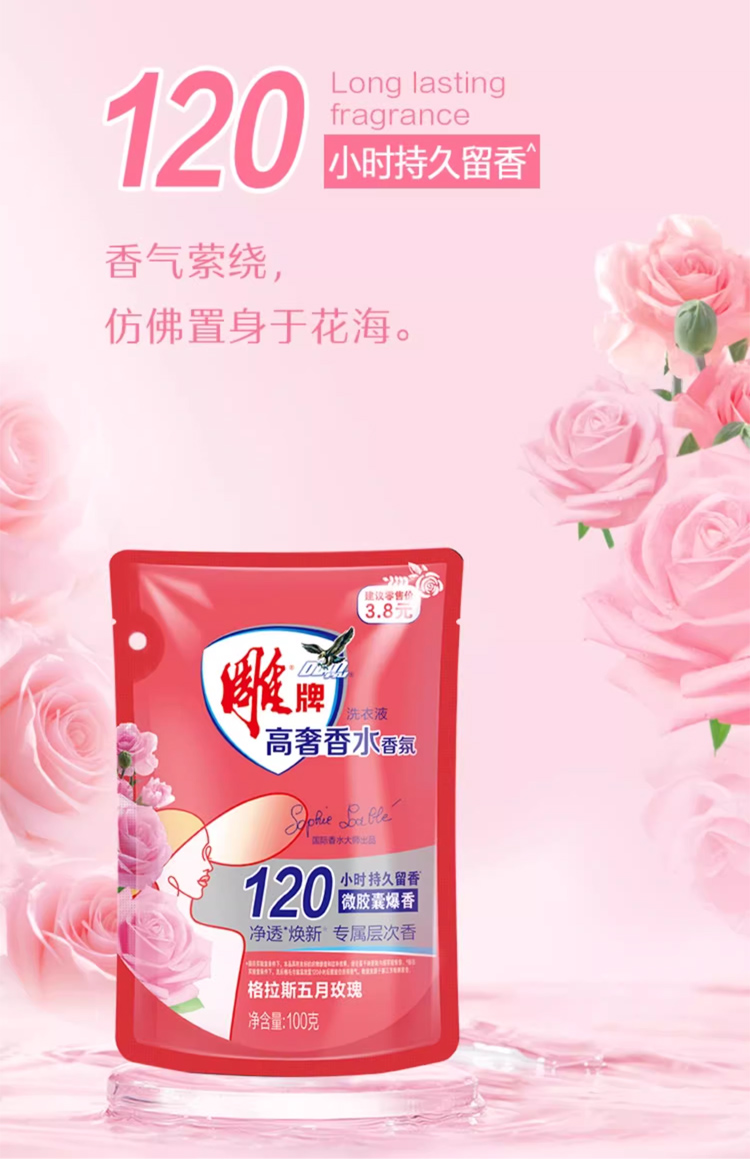 雕牌高奢香水香氛洗衣液100g*10袋(五月玫瑰)