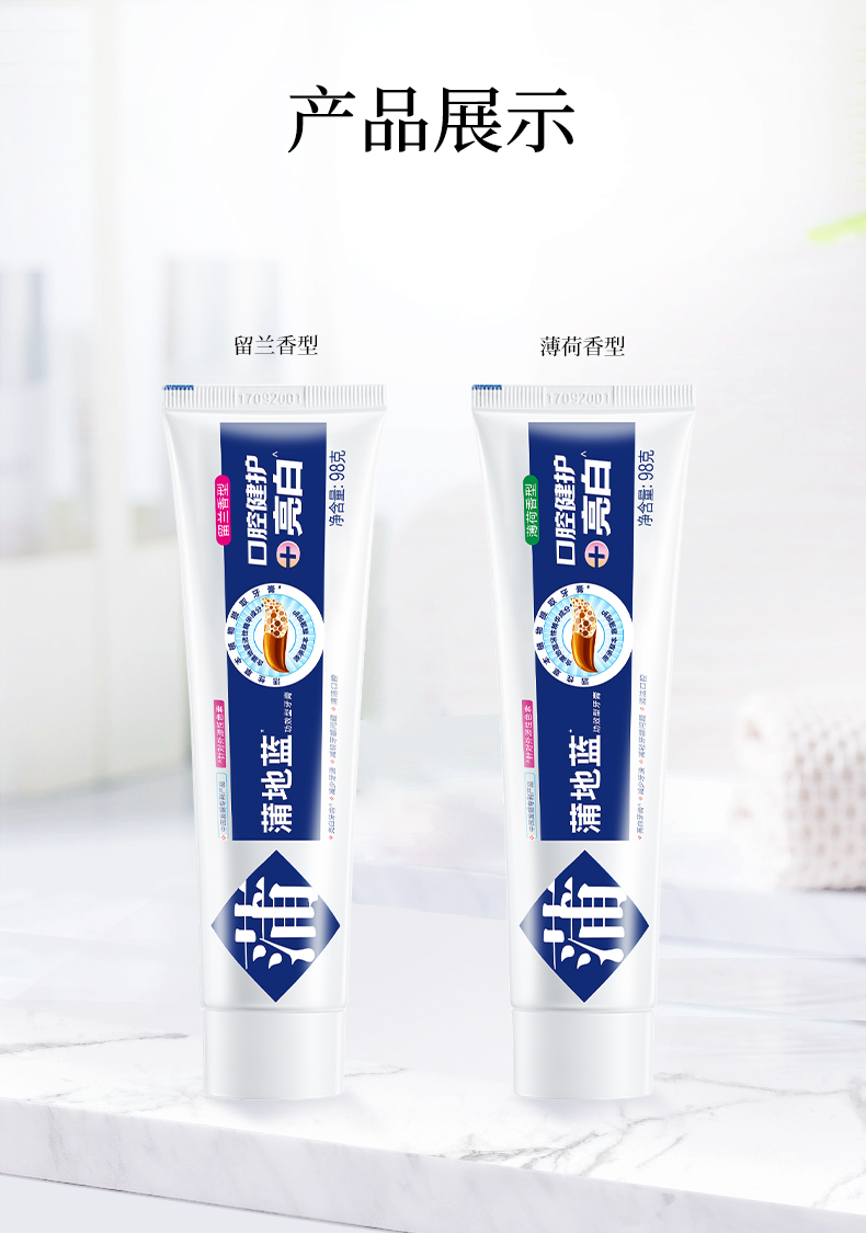 商品名称:蒲地蓝口腔健护亮白功效型牙膏98g