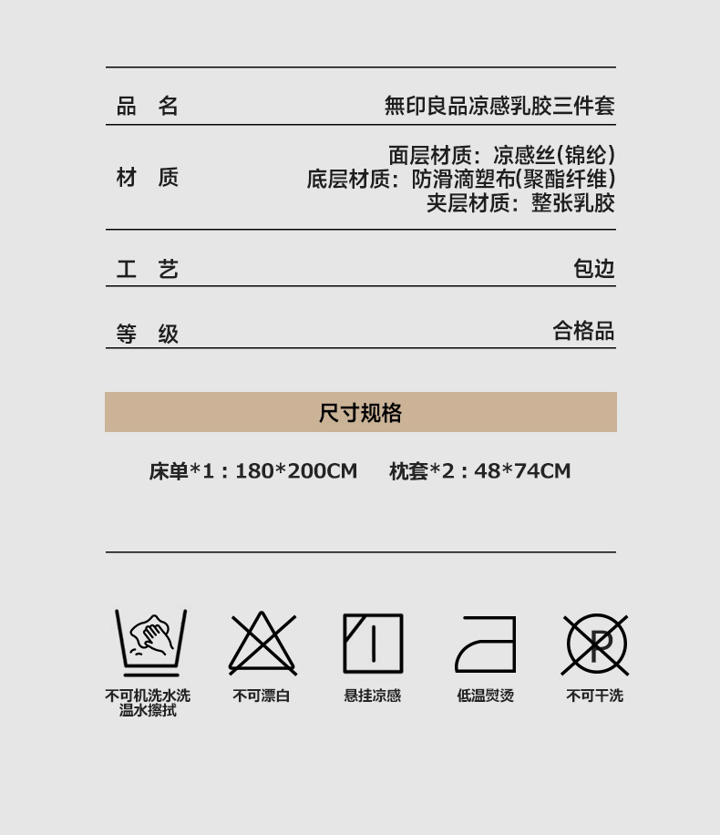 商品名称:无印良品凉感乳胶床品三件套180*200cm