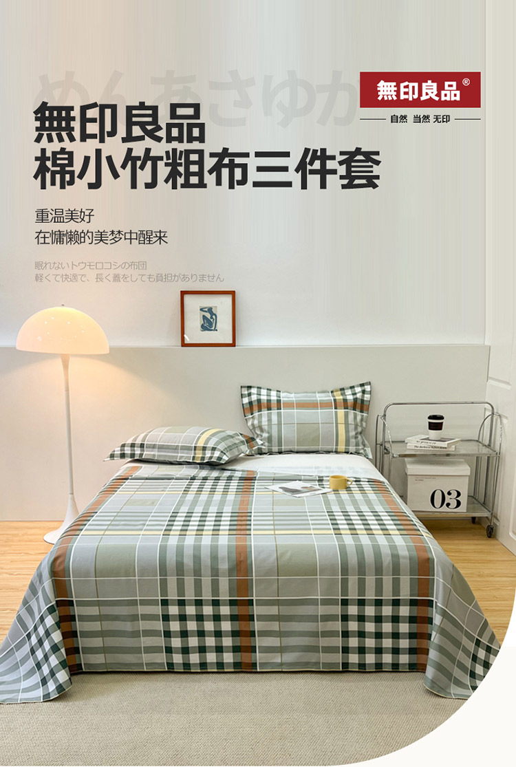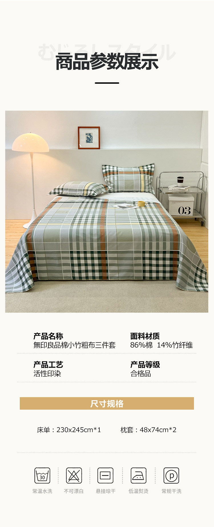 商品名称:无印良品棉小竹粗布床品三件套230*245cm