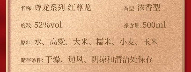 商品名称:五粮液 股份尊酒红尊龙 52度浓香型白酒 500ml*2瓶配礼袋