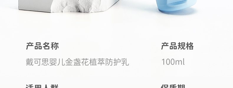 商品名称:戴可思(Dexter)婴儿金盏花植萃防护乳 100ml*2支