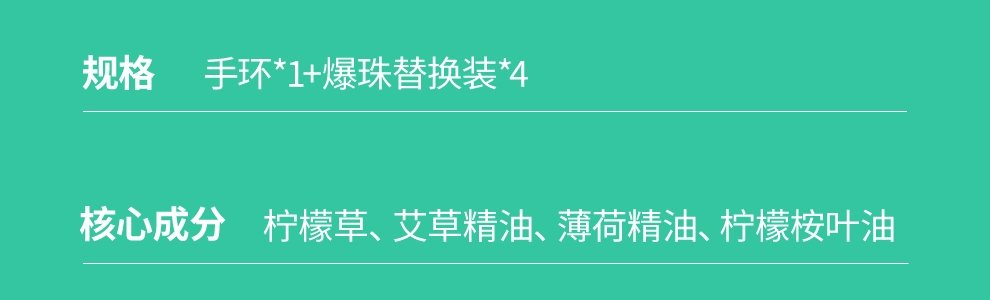 商品名称:彩虹 敦煌联名爆珠植物精油 驱蚊手环5006F 绿色薄荷味