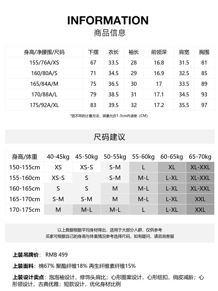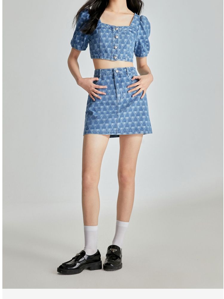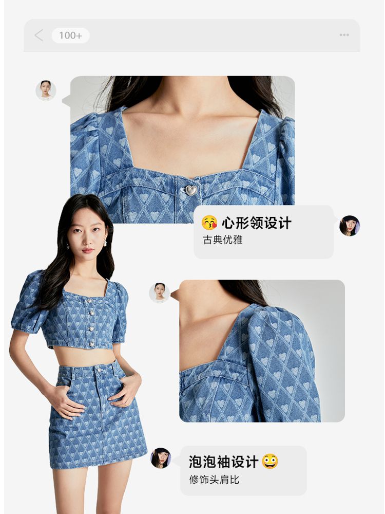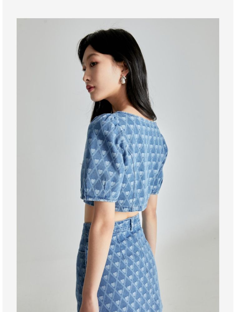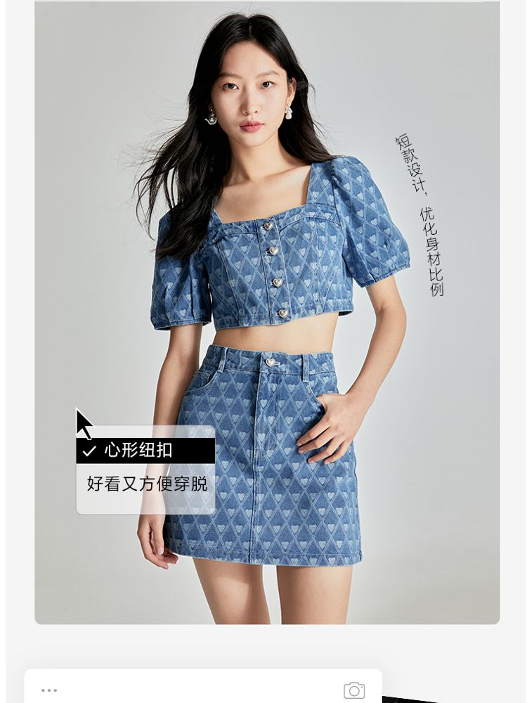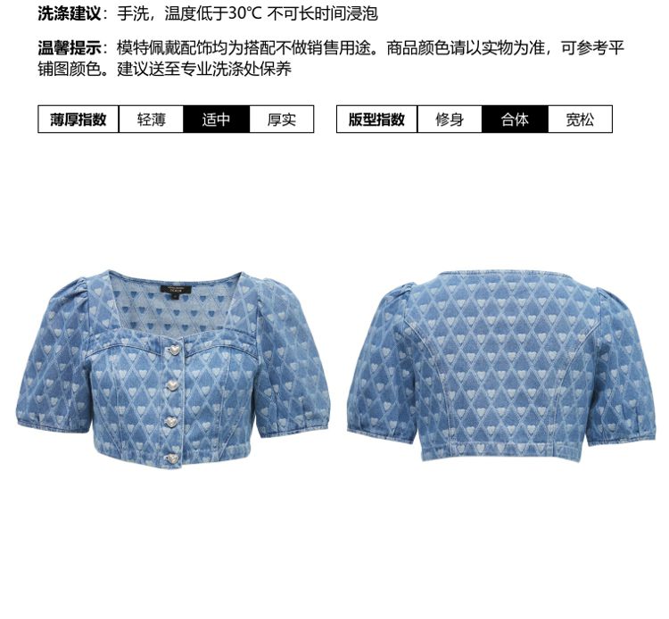 商品名称:【牛仔心形】专柜同款方领泡泡袖夏季夏款上衣短袖T恤 116433