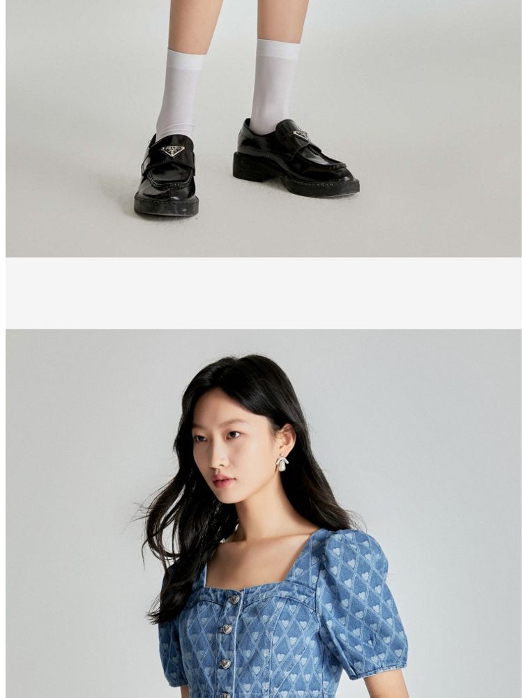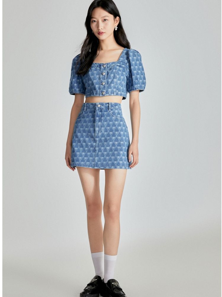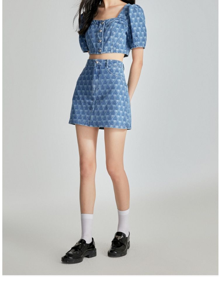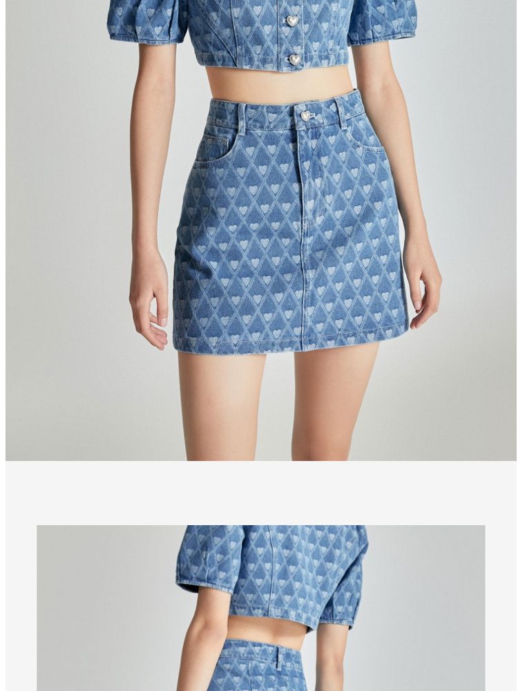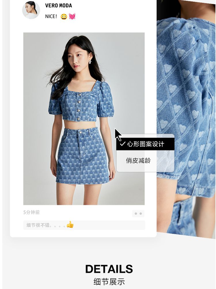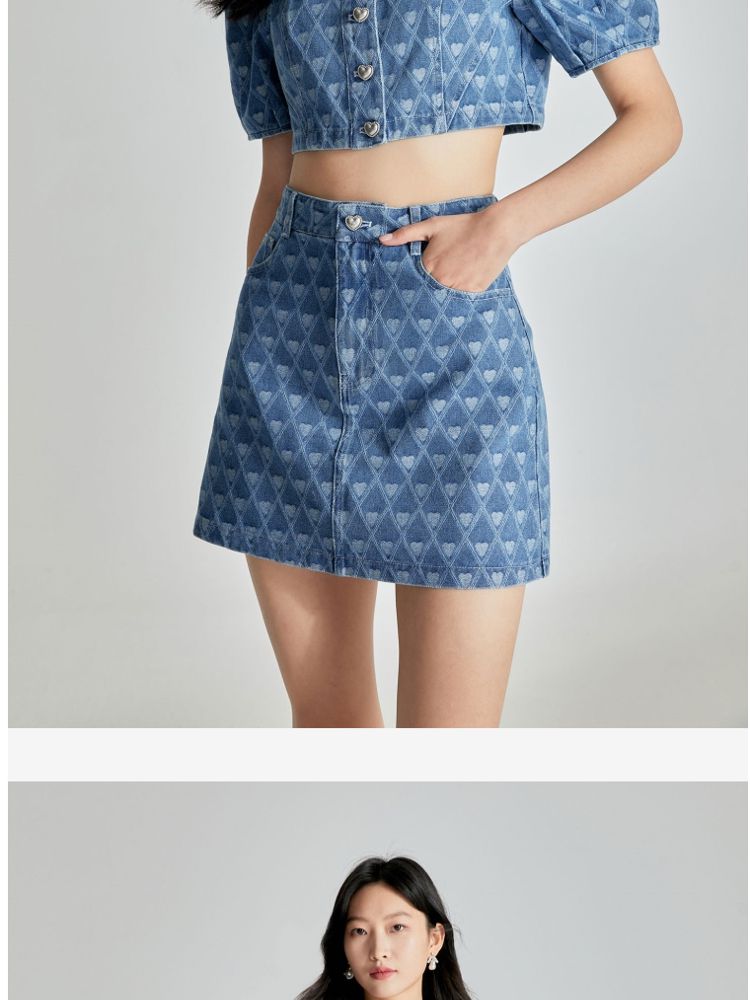 商品名称:【牛仔心形】专柜同款方领泡泡袖夏季夏款上衣短袖T恤 116433