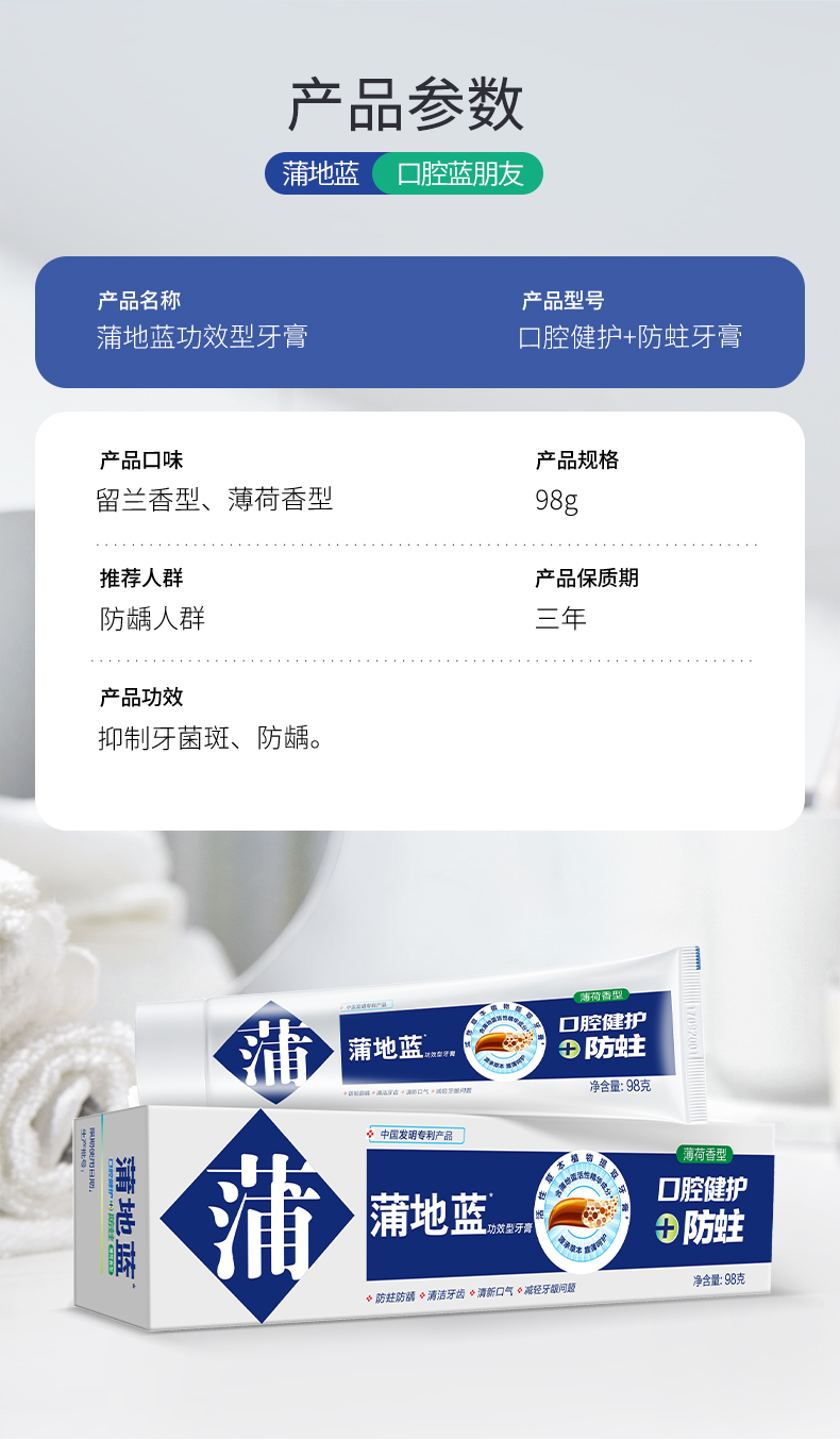 商品名称:蒲地蓝口腔健护防蛀功效型牙膏98g