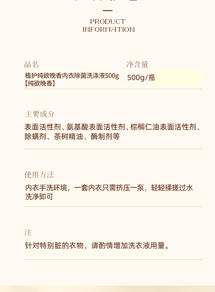 商品名称:植护内衣除菌洗涤液500g(纯欲晚香)