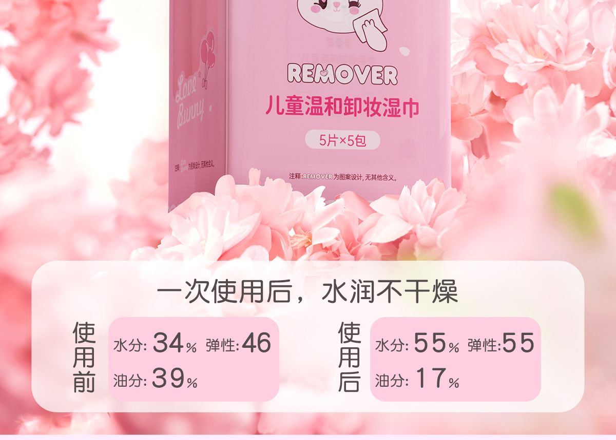 商品名称:莱索兔 儿童温和卸妆湿巾 5小包/提*2