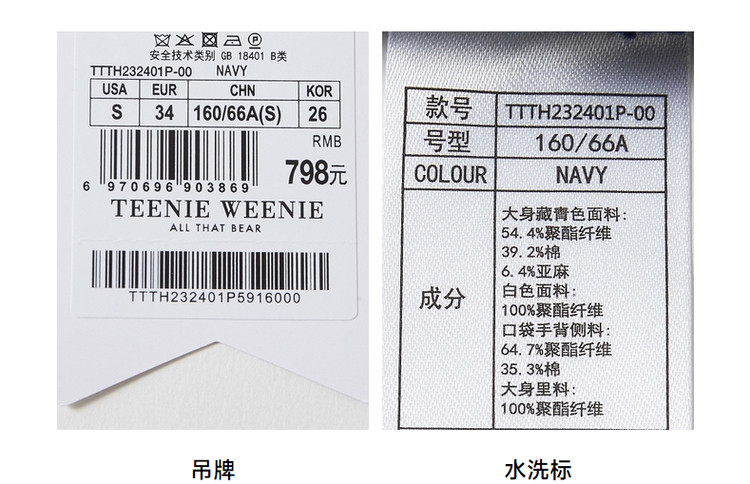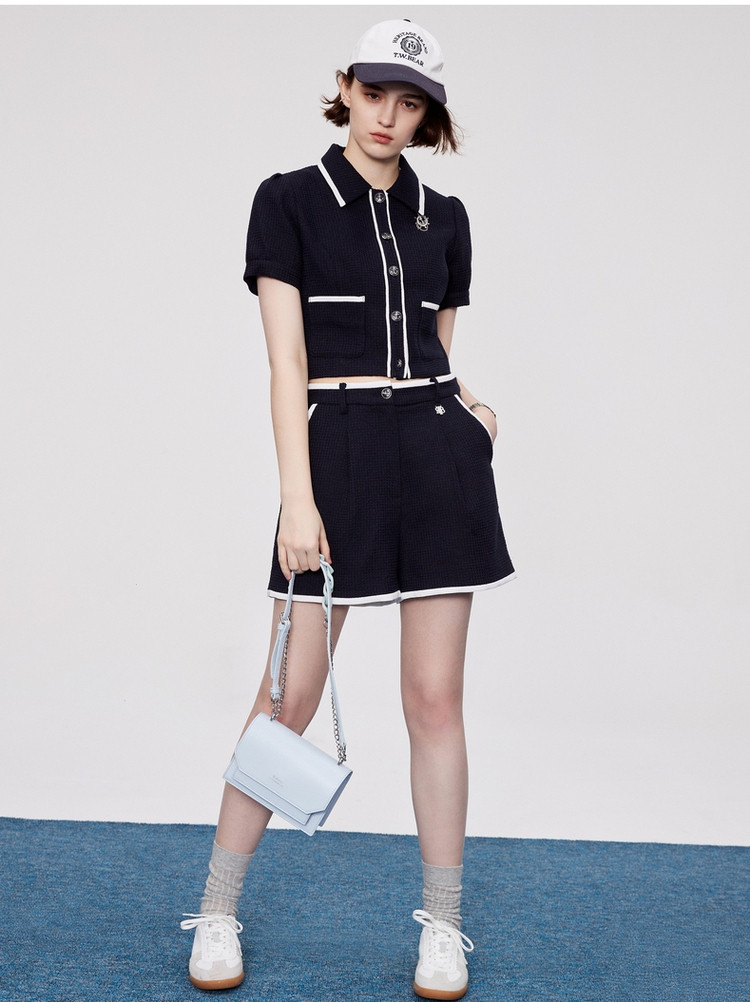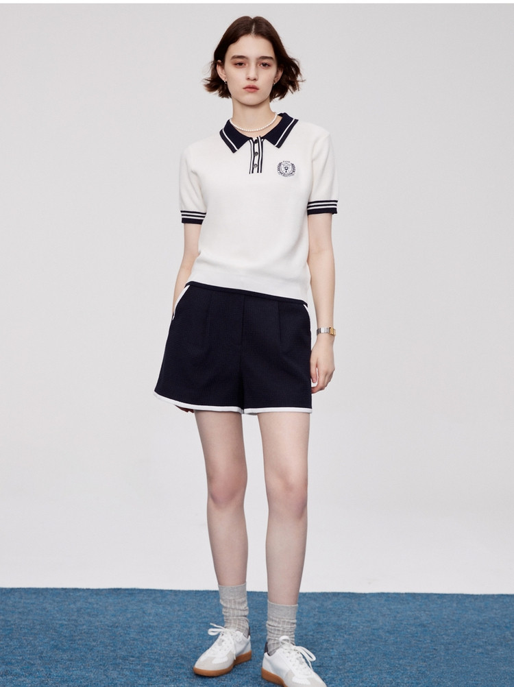 商品名称:小熊夏款舒适学院风肌理感撞色短裤子女 860545