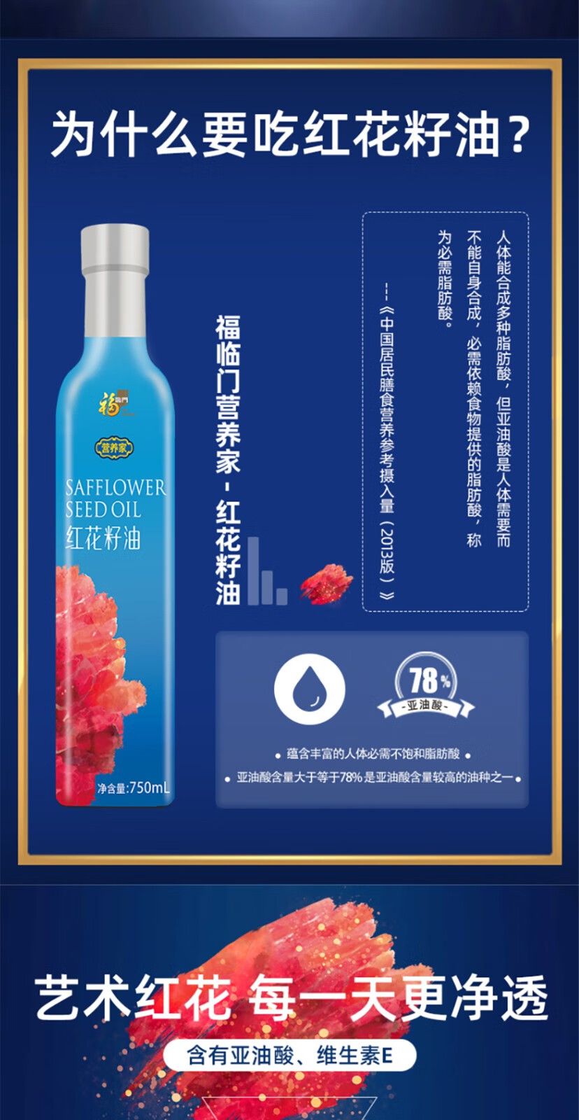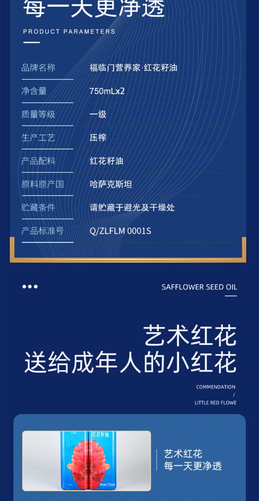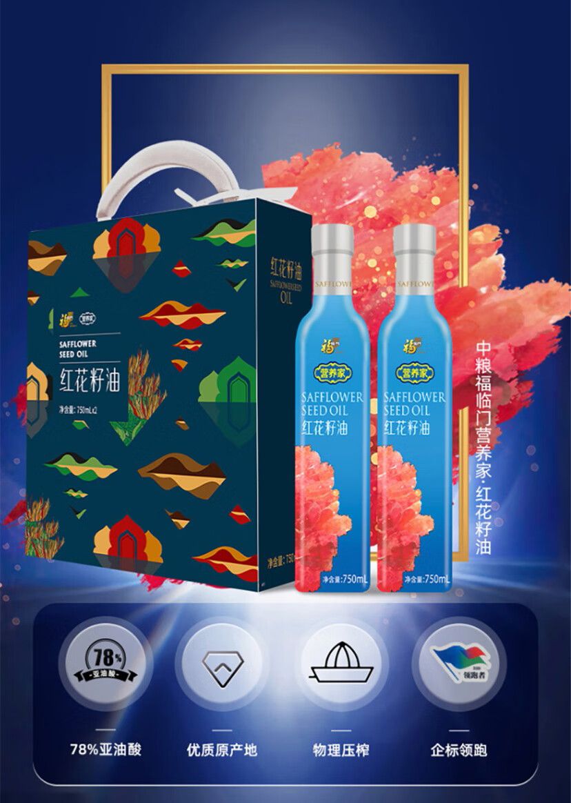 商品名称:福临门 红花籽油 压榨一级 750ml*2 (单位:盒)