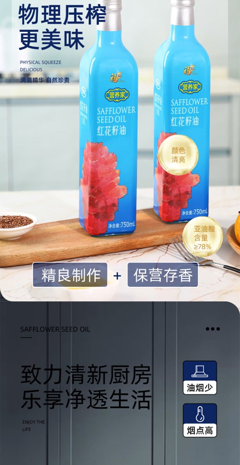 福临门 红花籽油 压榨一级 750ml*2 (单位:盒)