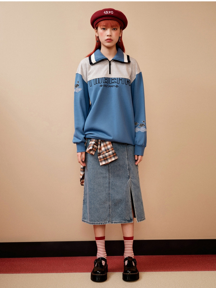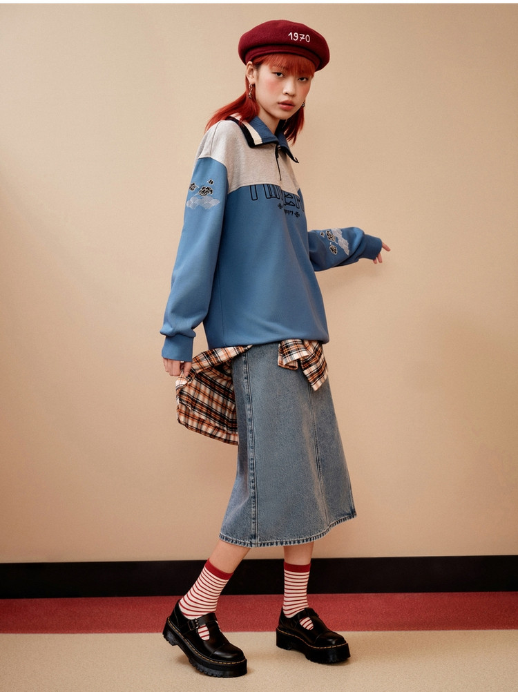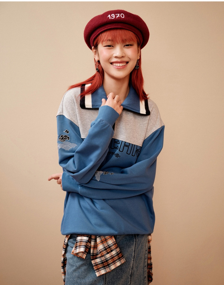卫衣女学院风小熊翻领撞色卫衣外套女 242625