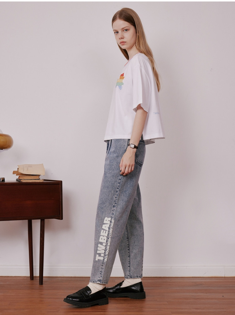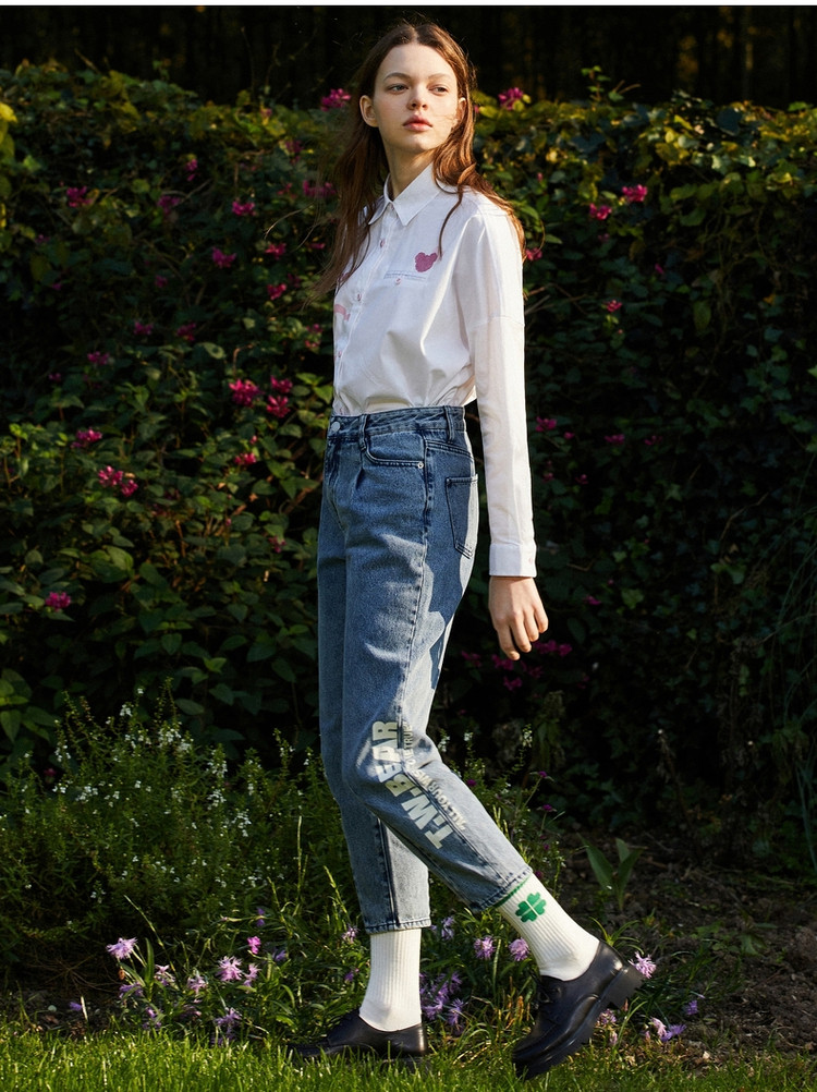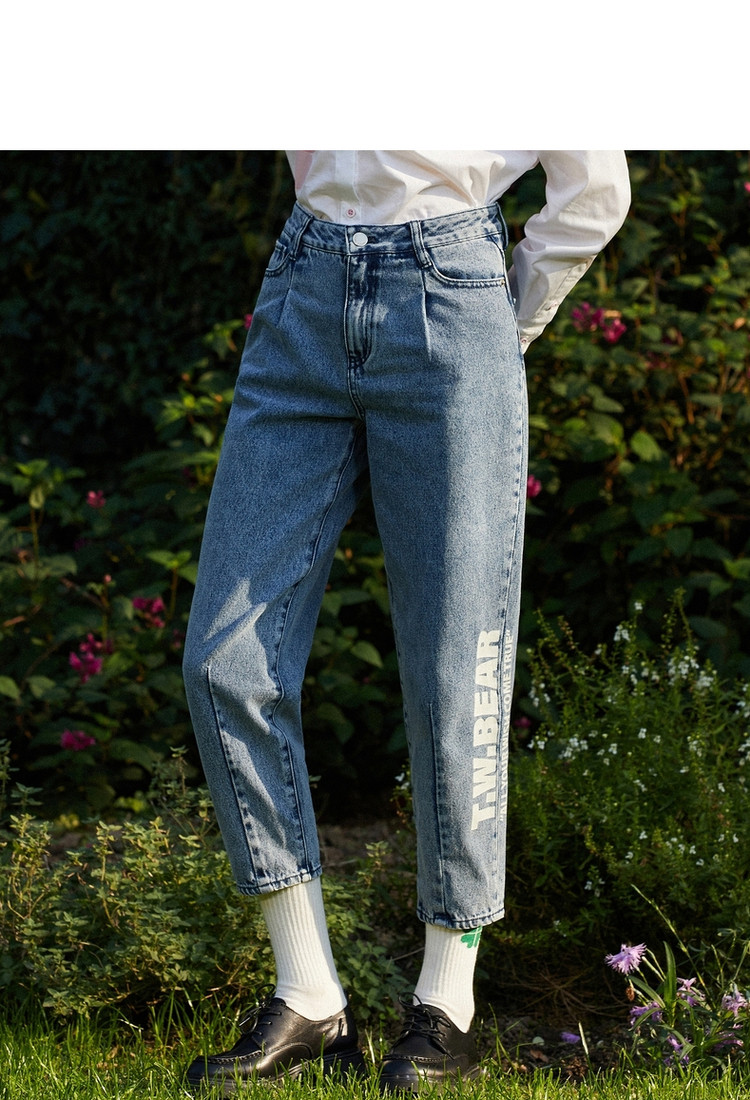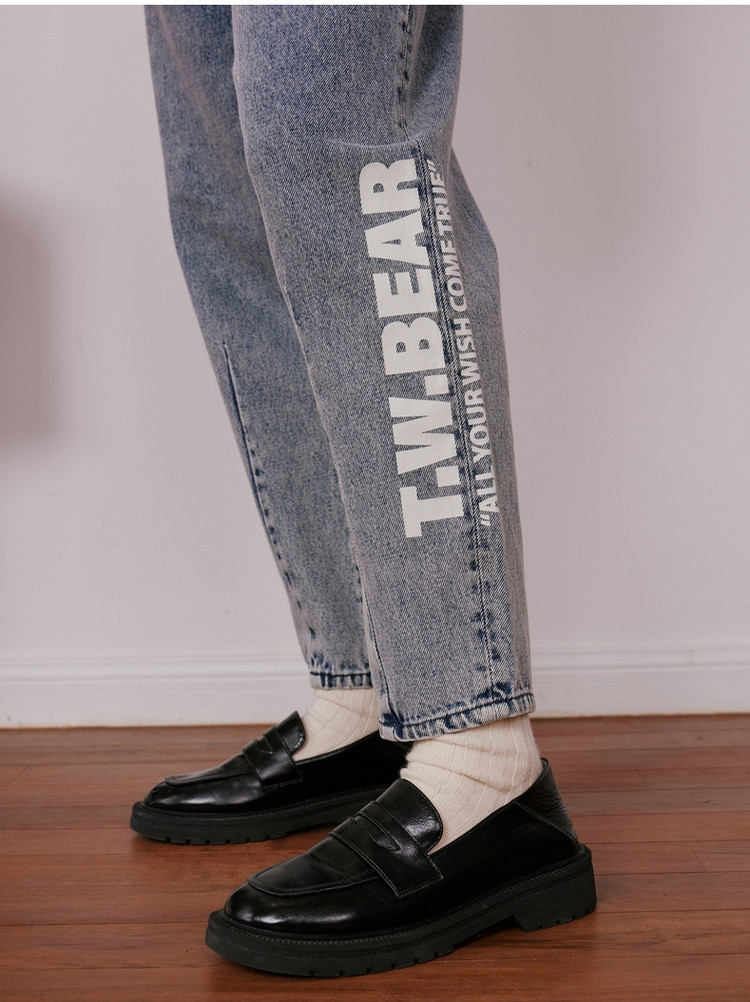 小熊字母牛仔裤女时尚百搭秋季女学院风小脚裤长裤 108545