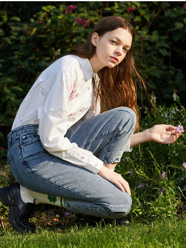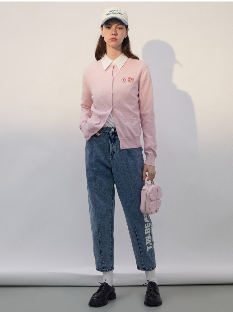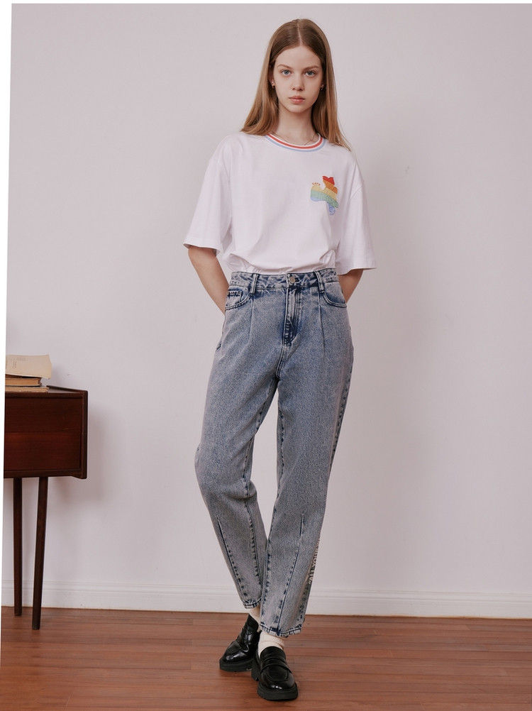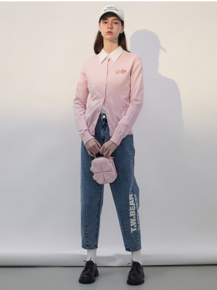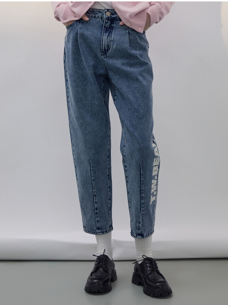 小熊字母牛仔裤女时尚百搭秋季女学院风小脚裤长裤 108545