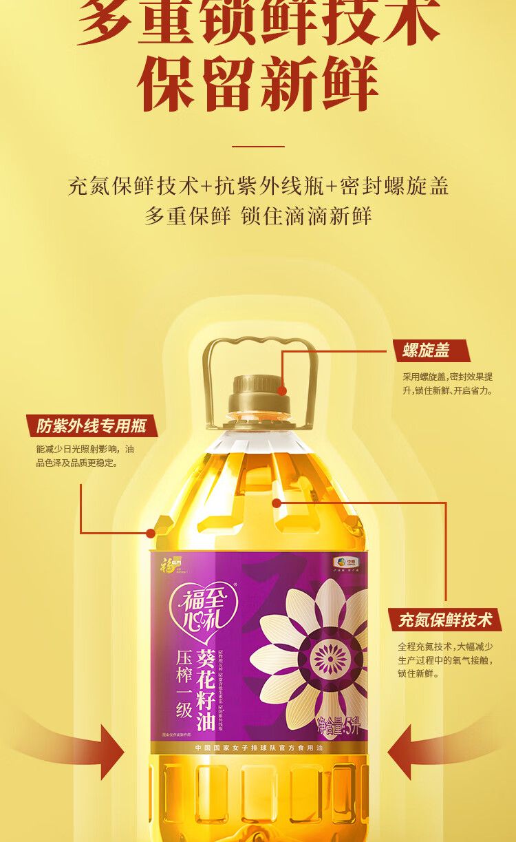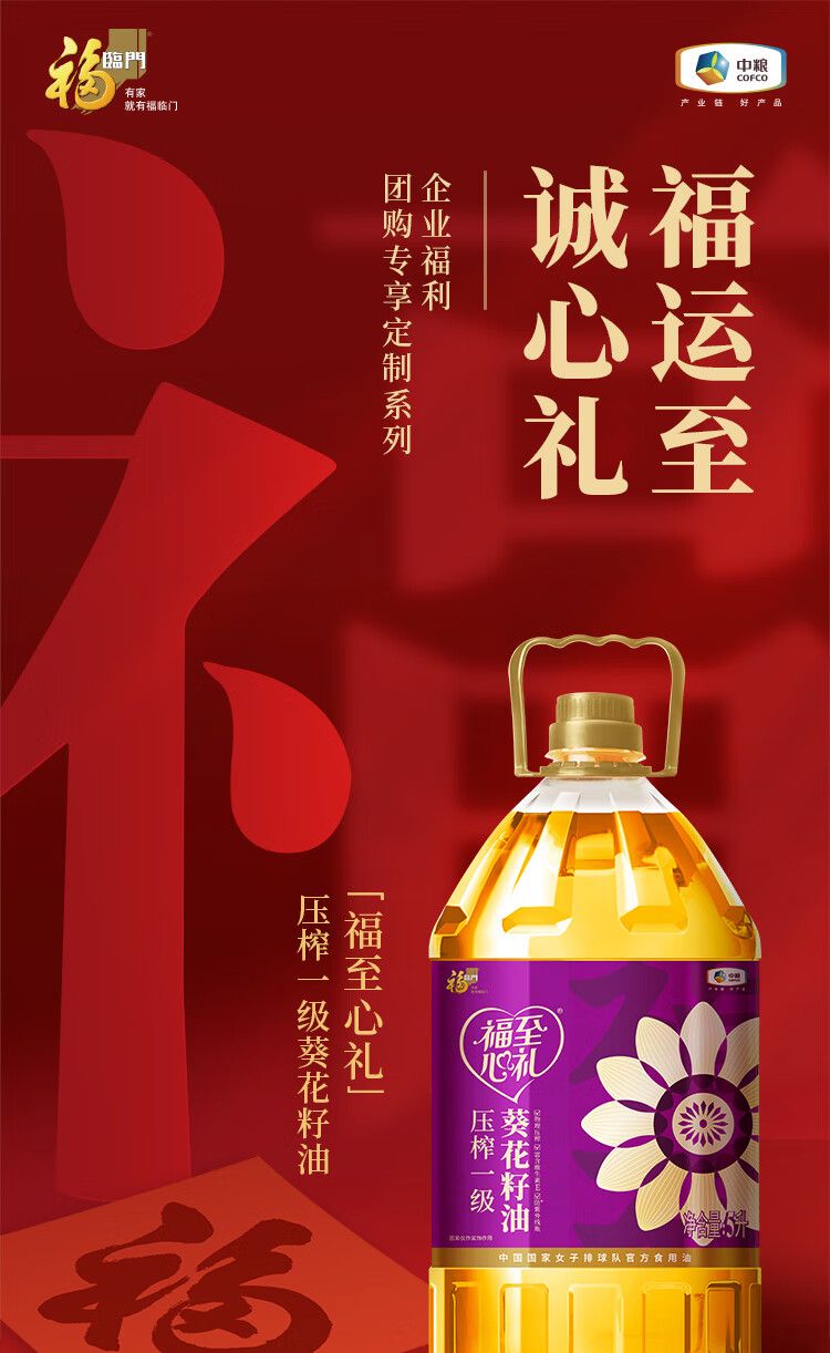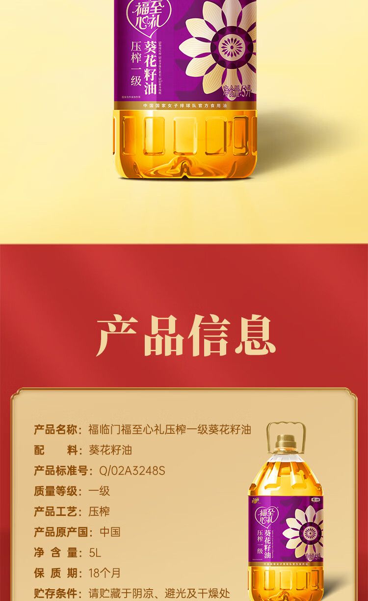 商品名称:福临门 福至心礼压榨一级葵花籽油5L