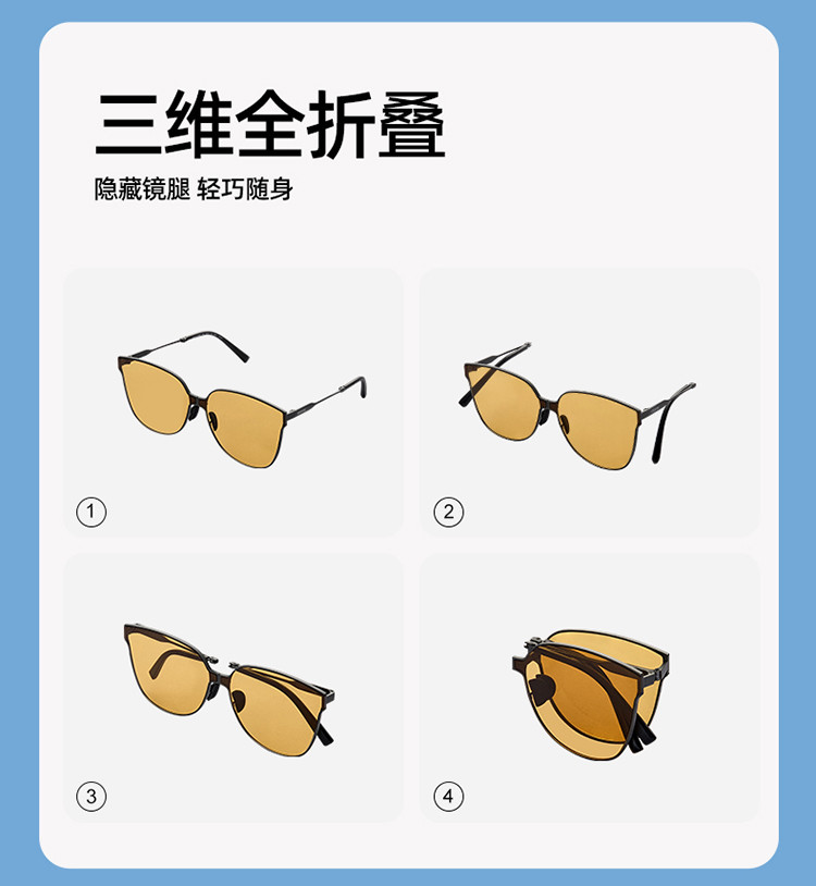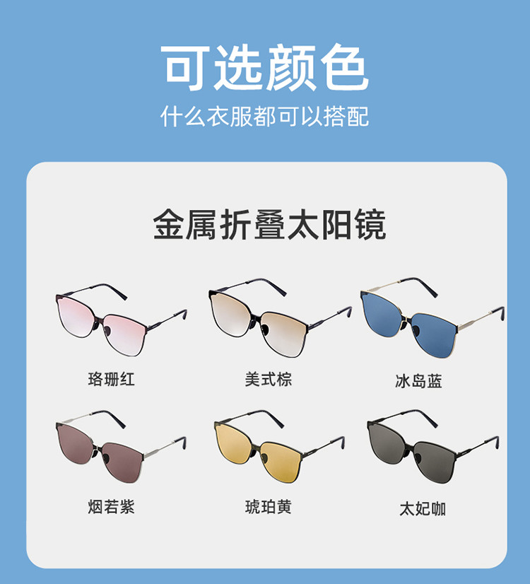 商品名称:折叠金属框墨镜女新款轻盈开车偏光眼镜防紫外线防晒显瘦太阳镜 855309