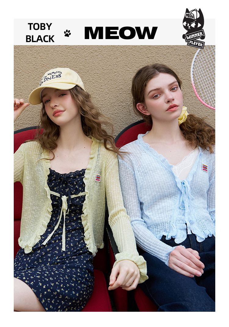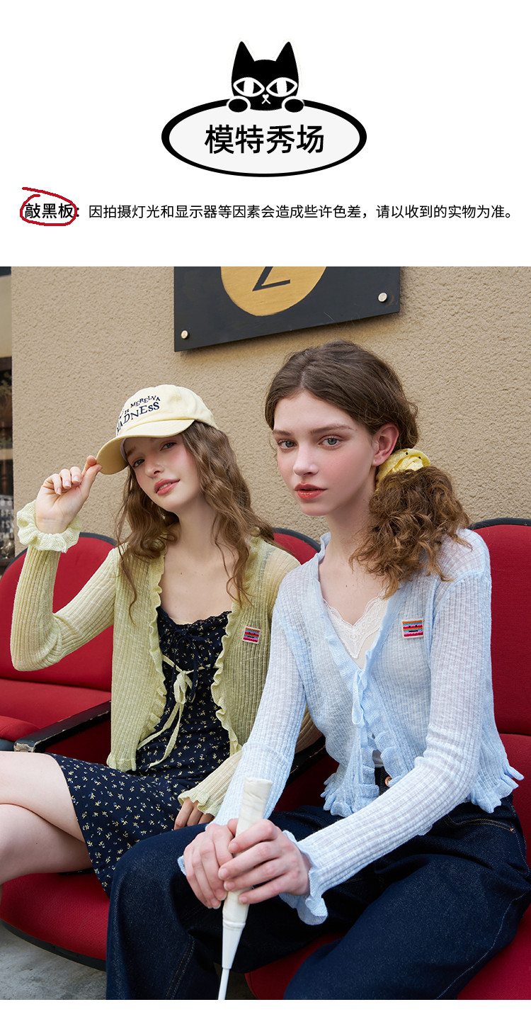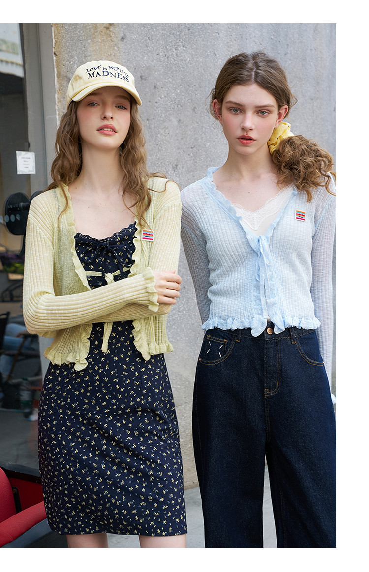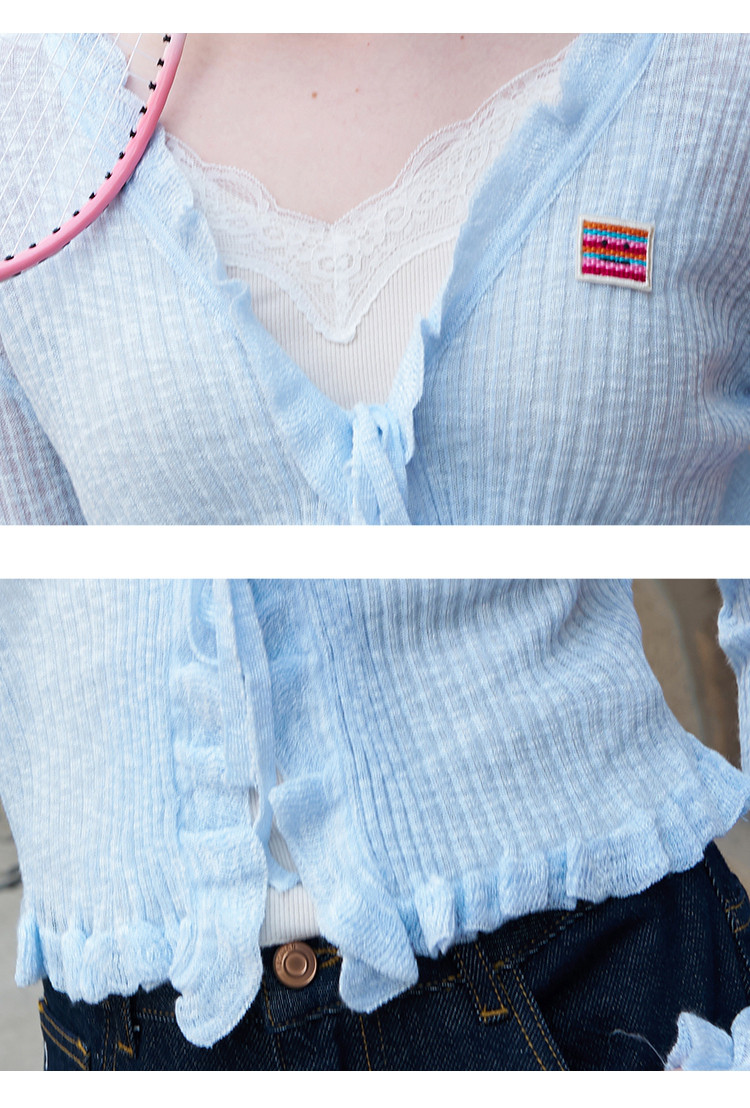 商品名称:荷叶花边披肩文艺风短款针织开衫2025夏季百搭休闲女式针织衫 075037
