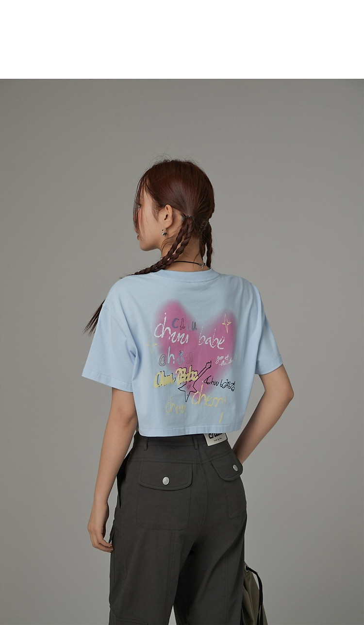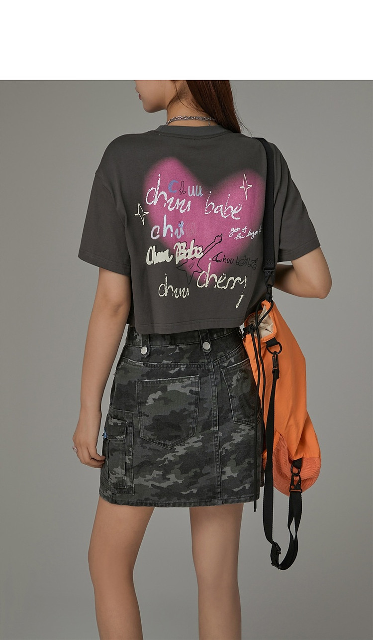 爱心字母卡通印花T恤女2025夏学院风宽松短袖上衣 692883