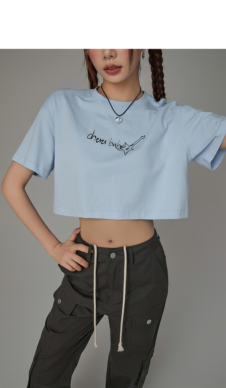 商品名称:爱心字母卡通印花T恤女2025夏学院风宽松短袖上衣 692883