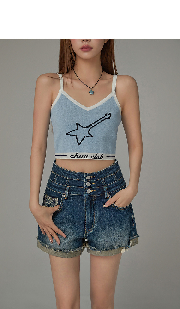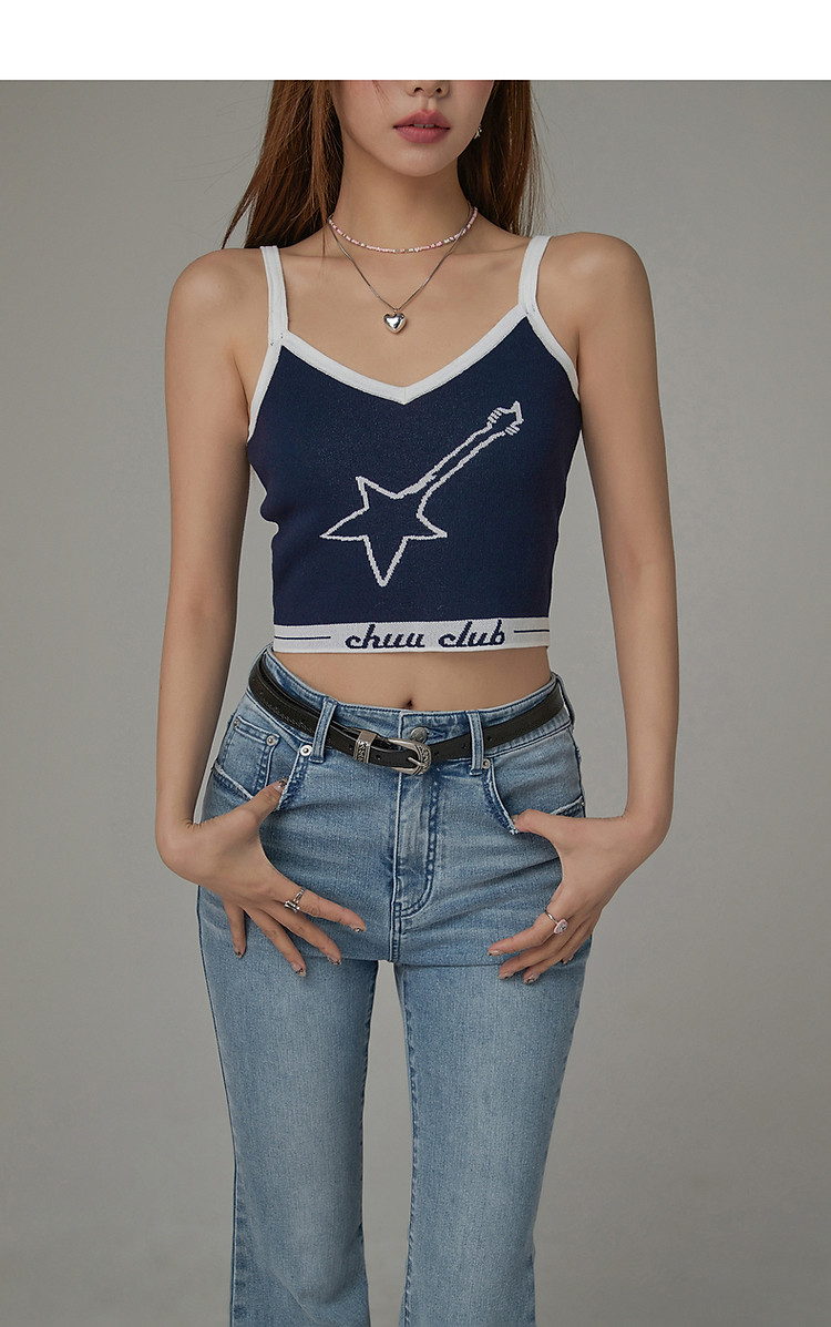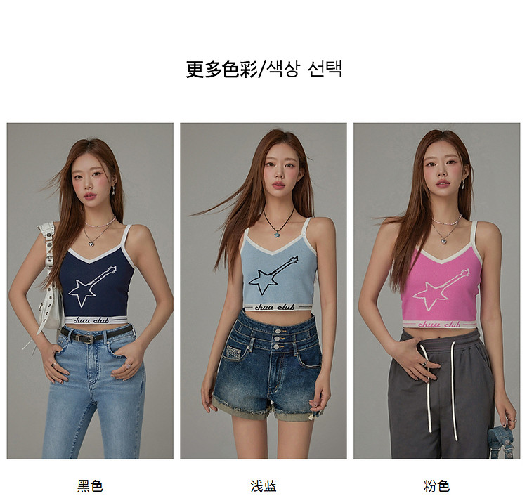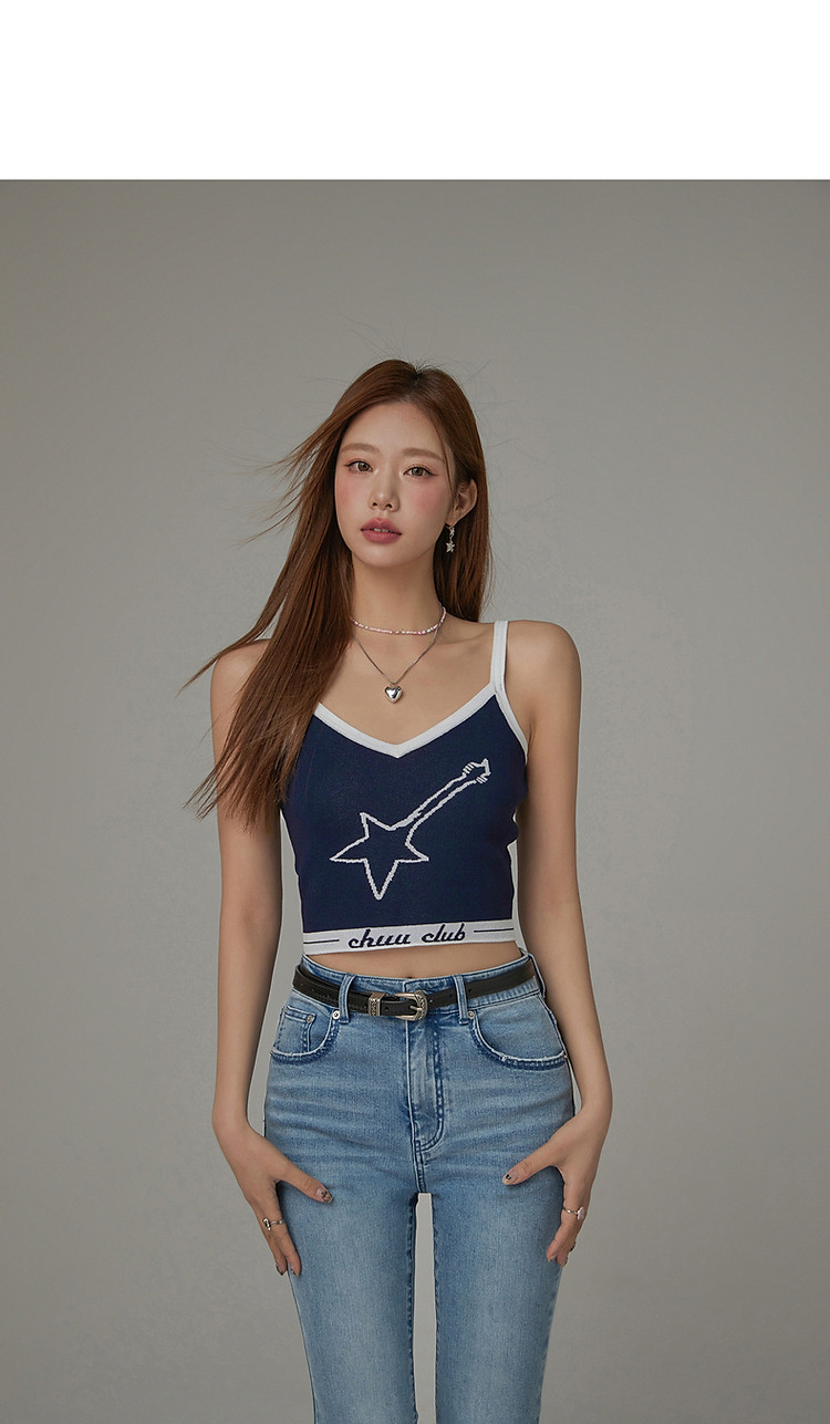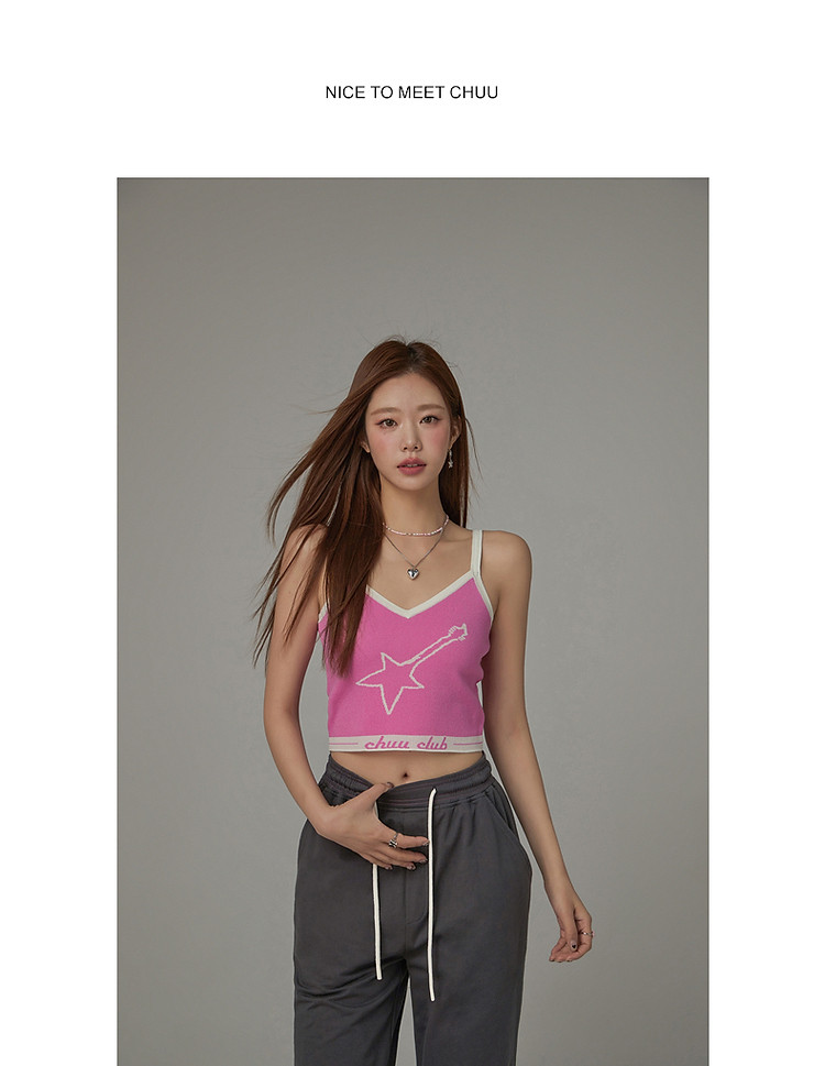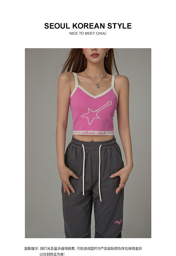 商品名称:星星字母提花针织吊带女2025夏V领内搭辣妹背心 113555