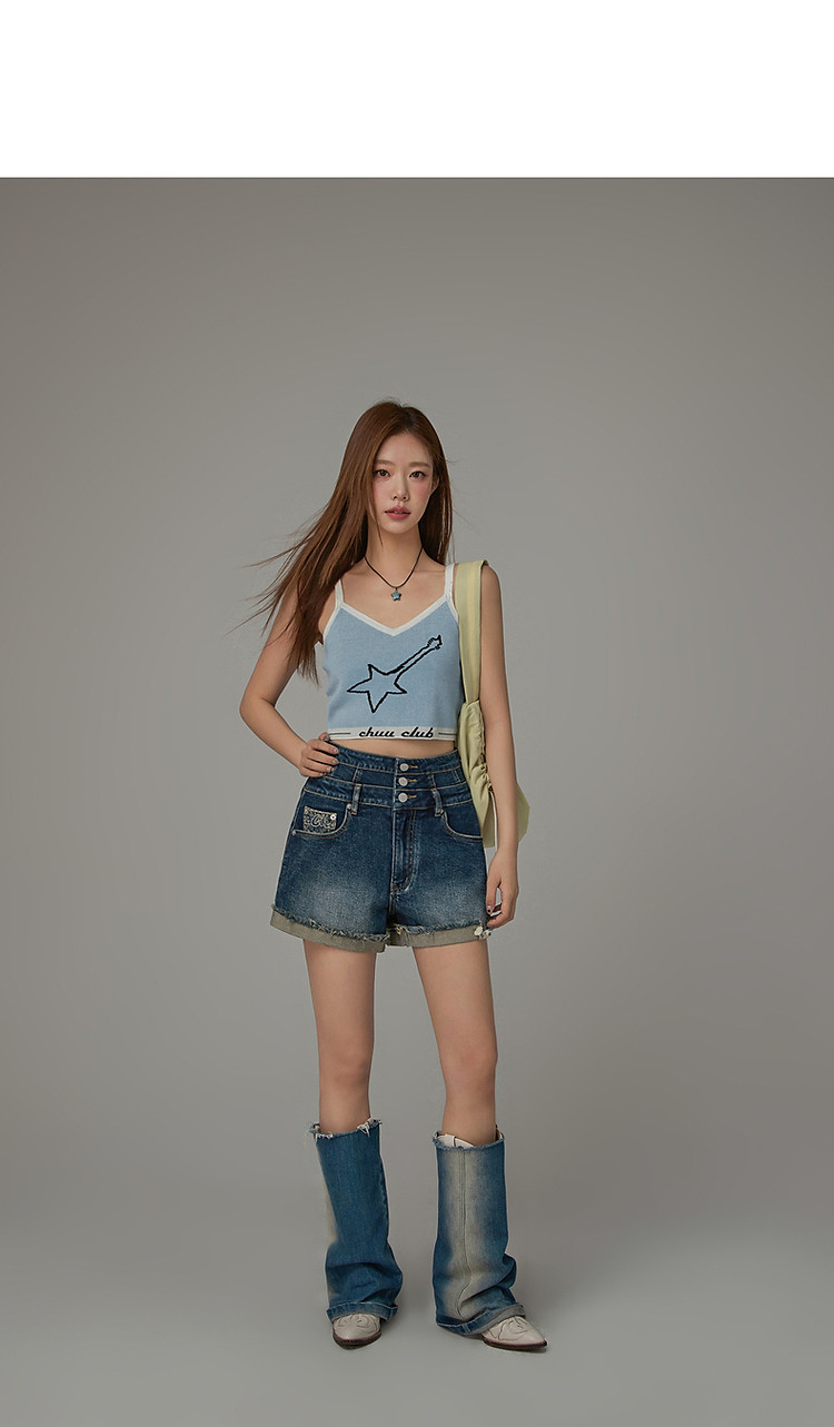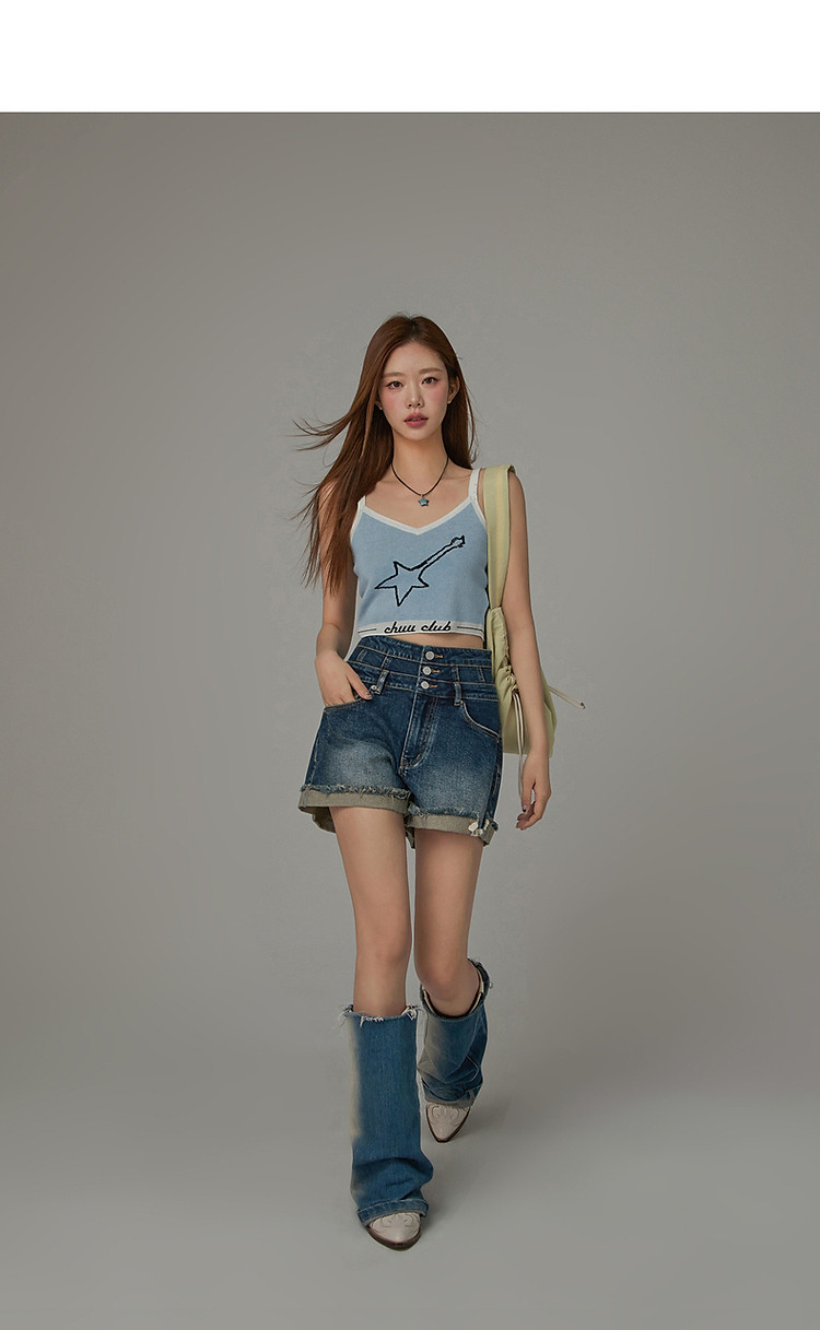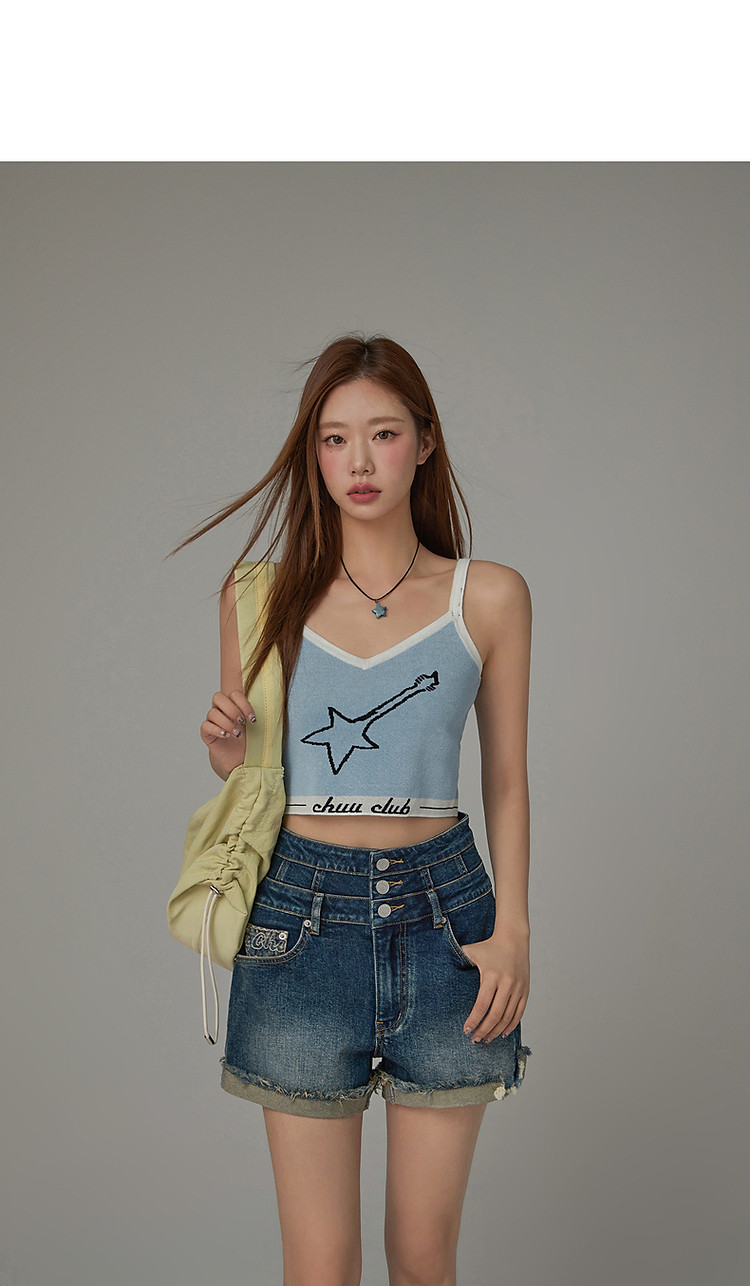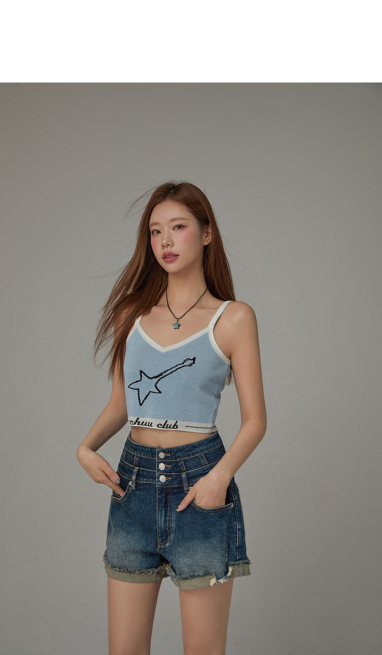 星星字母提花针织吊带女2025夏V领内搭辣妹背心 113555