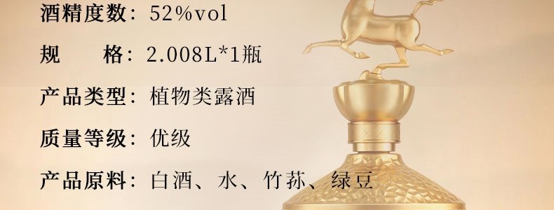 商品名称:五粮液 仙林生态 奢享马踏飞燕 52度浓香型白酒 2008ml*1坛
