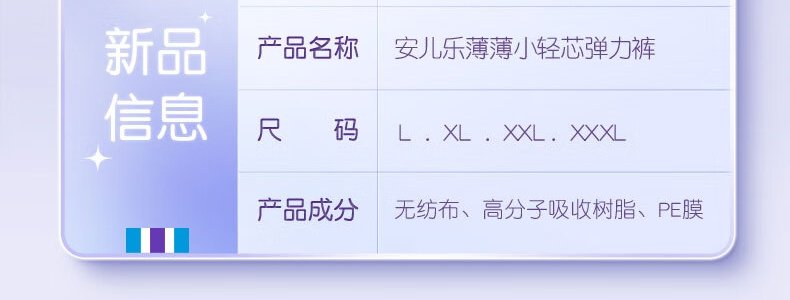 商品名称:安儿乐(ANERLE)薄薄小轻芯拉拉裤XXXXL42片(≥20kg)新老包装随机发货