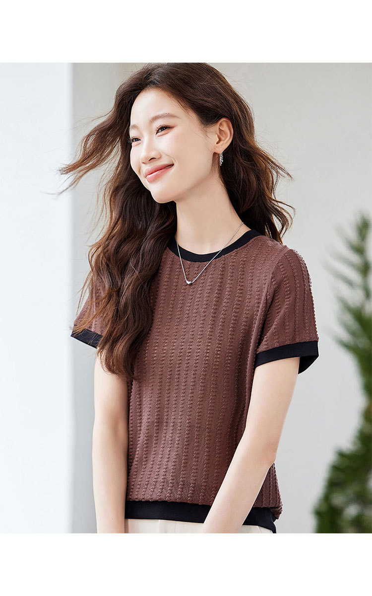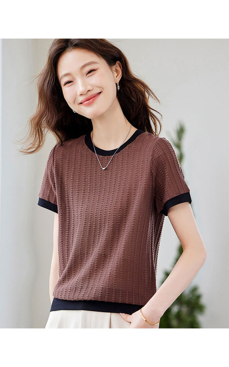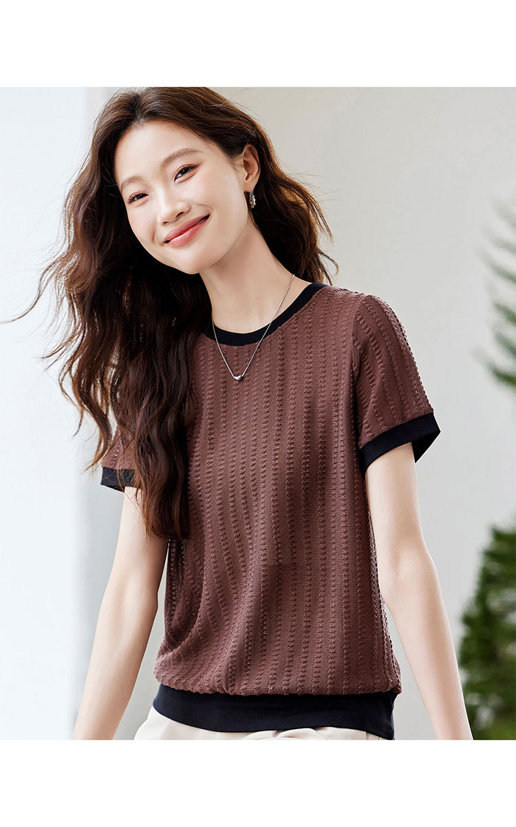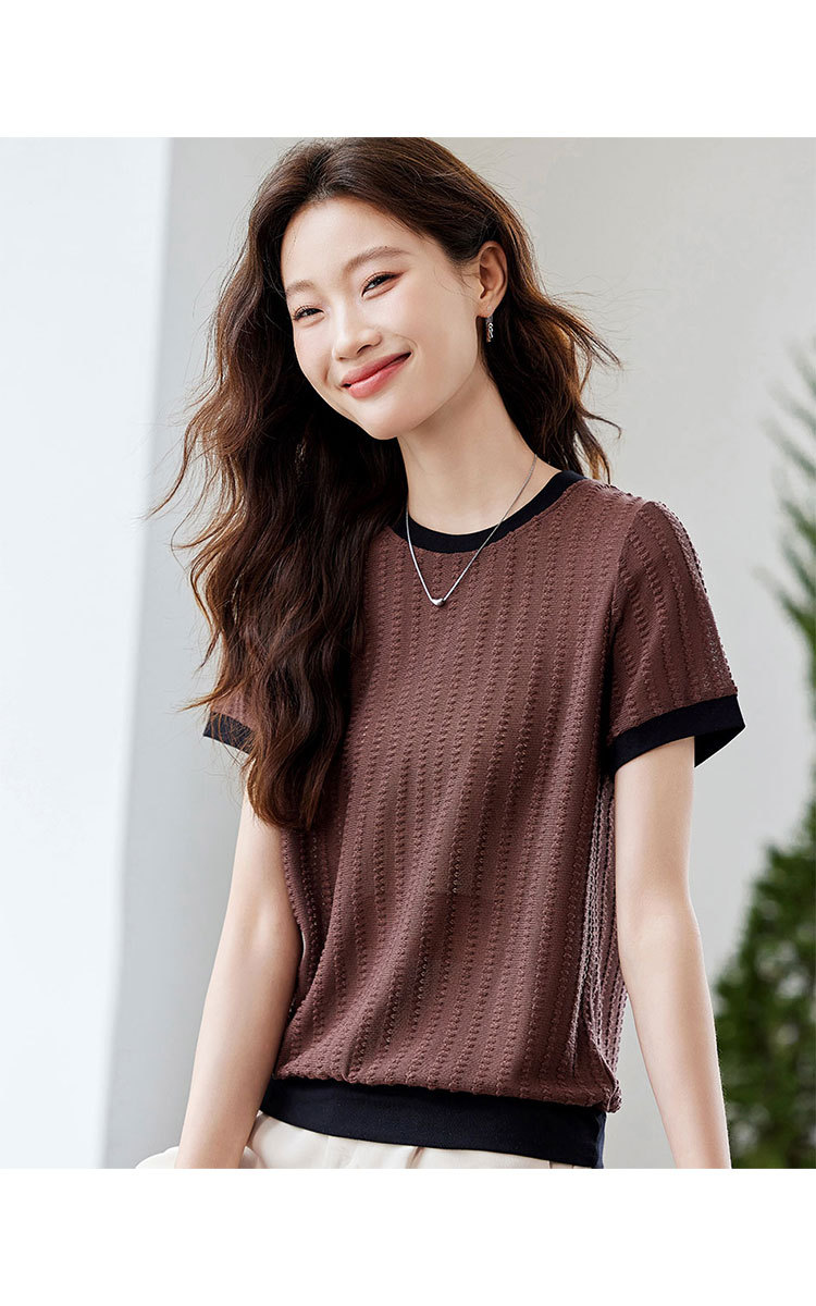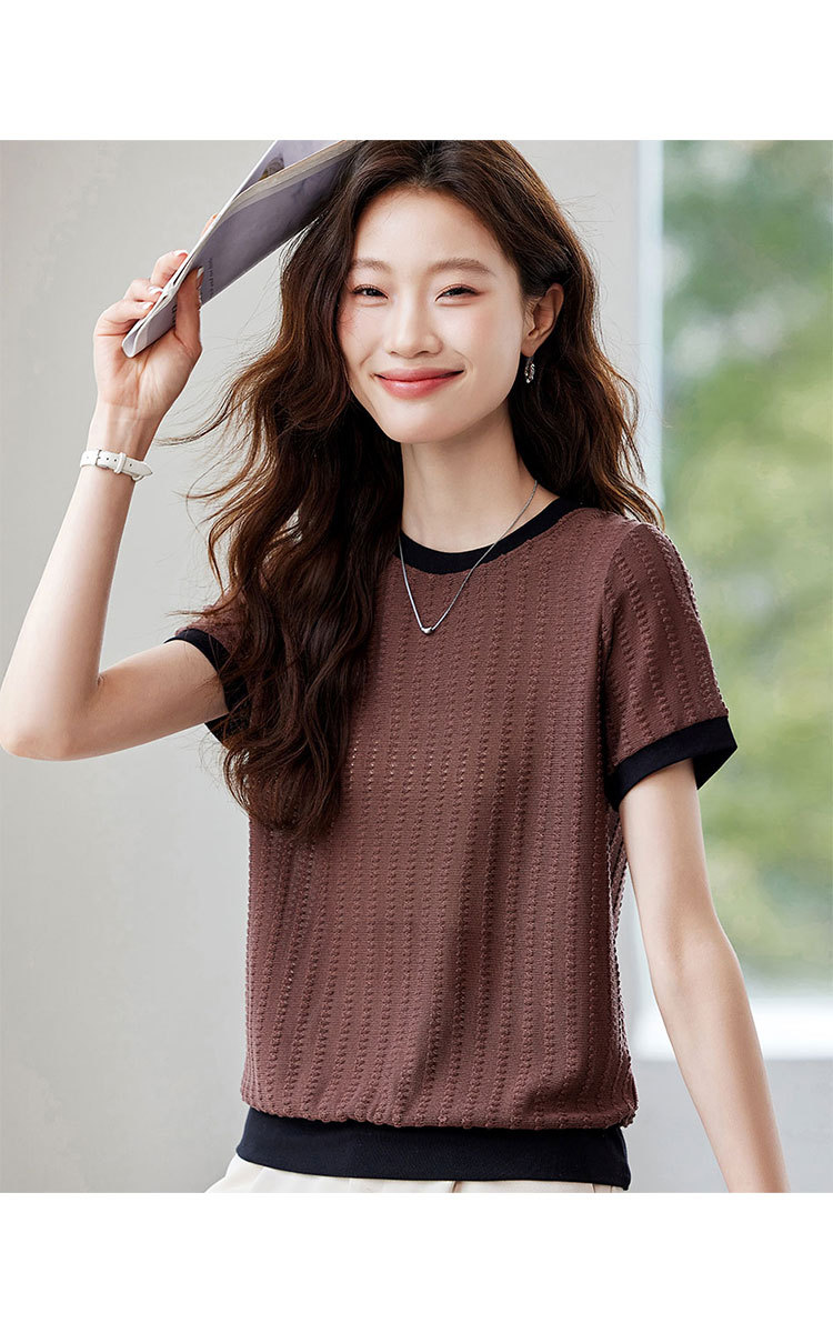商品名称:肌理感上衣女温柔气质减龄撞款显瘦t恤女2025夏款百搭短袖衫 794719