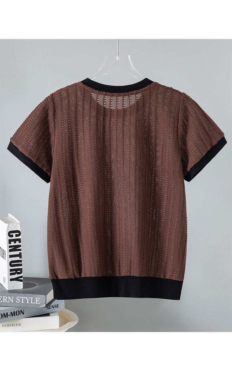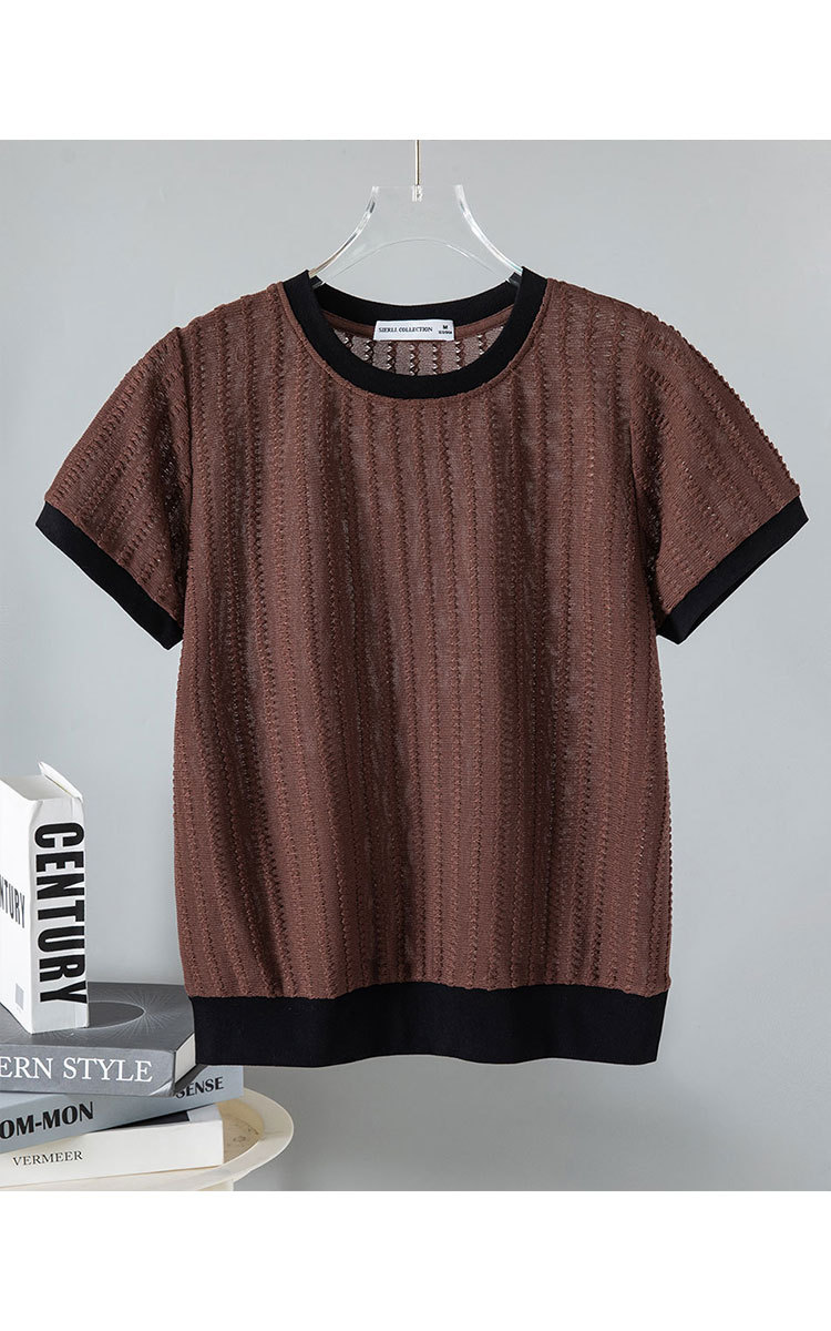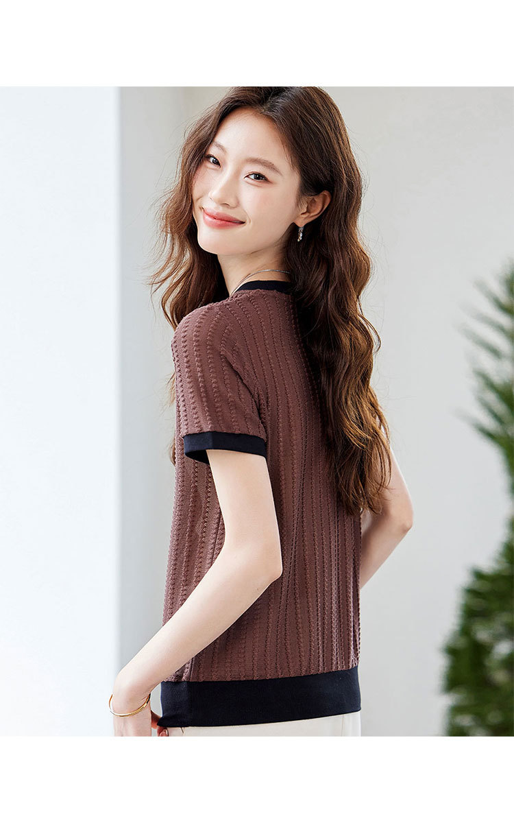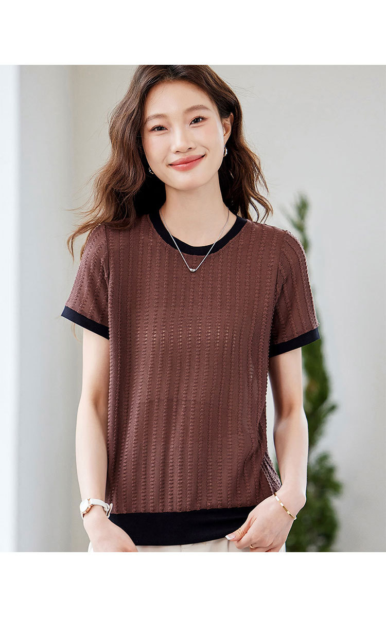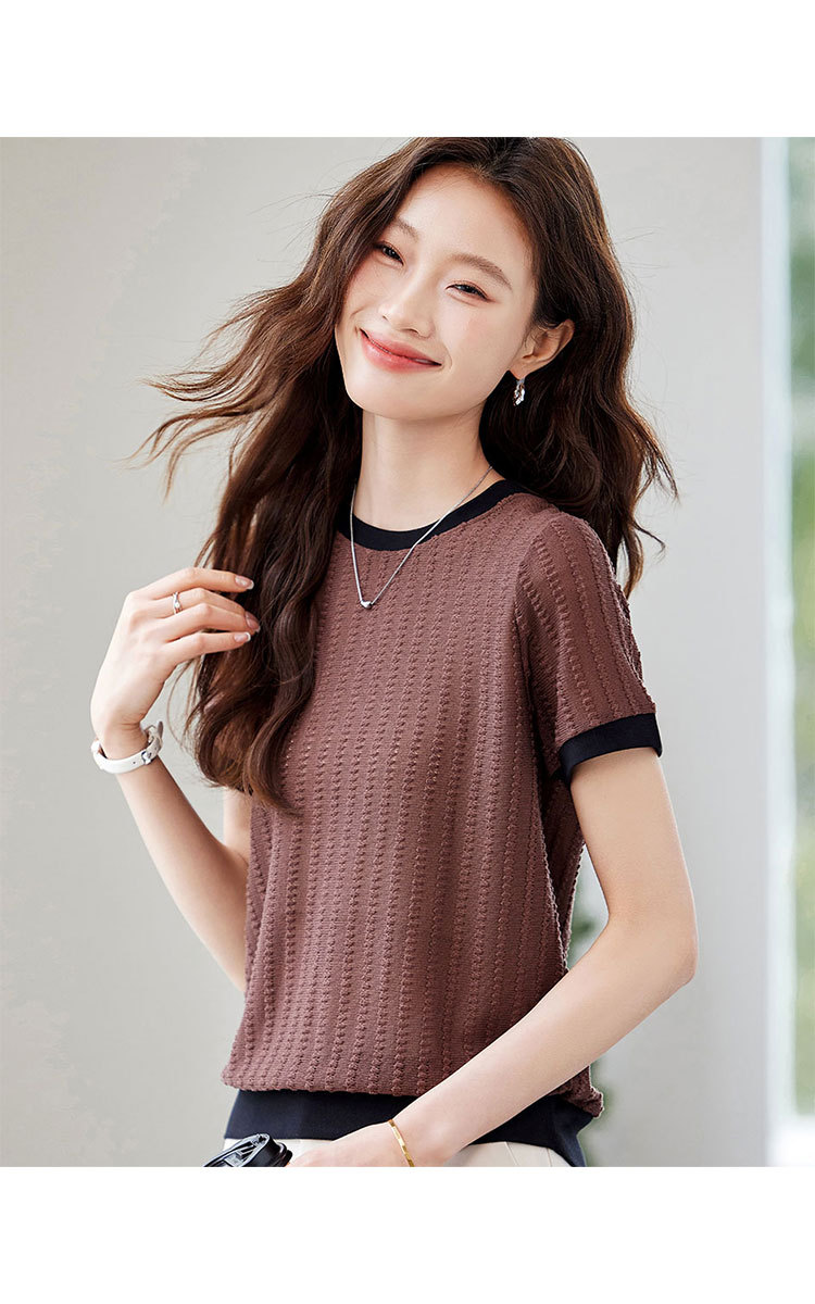 商品名称:肌理感上衣女温柔气质减龄撞款显瘦t恤女2025夏款百搭短袖衫 794719