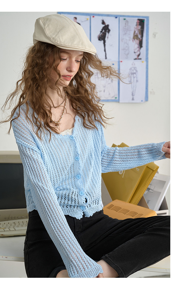 法式花边设计外搭披肩针织开衫2025夏季休闲百搭女式针织衫 712925
