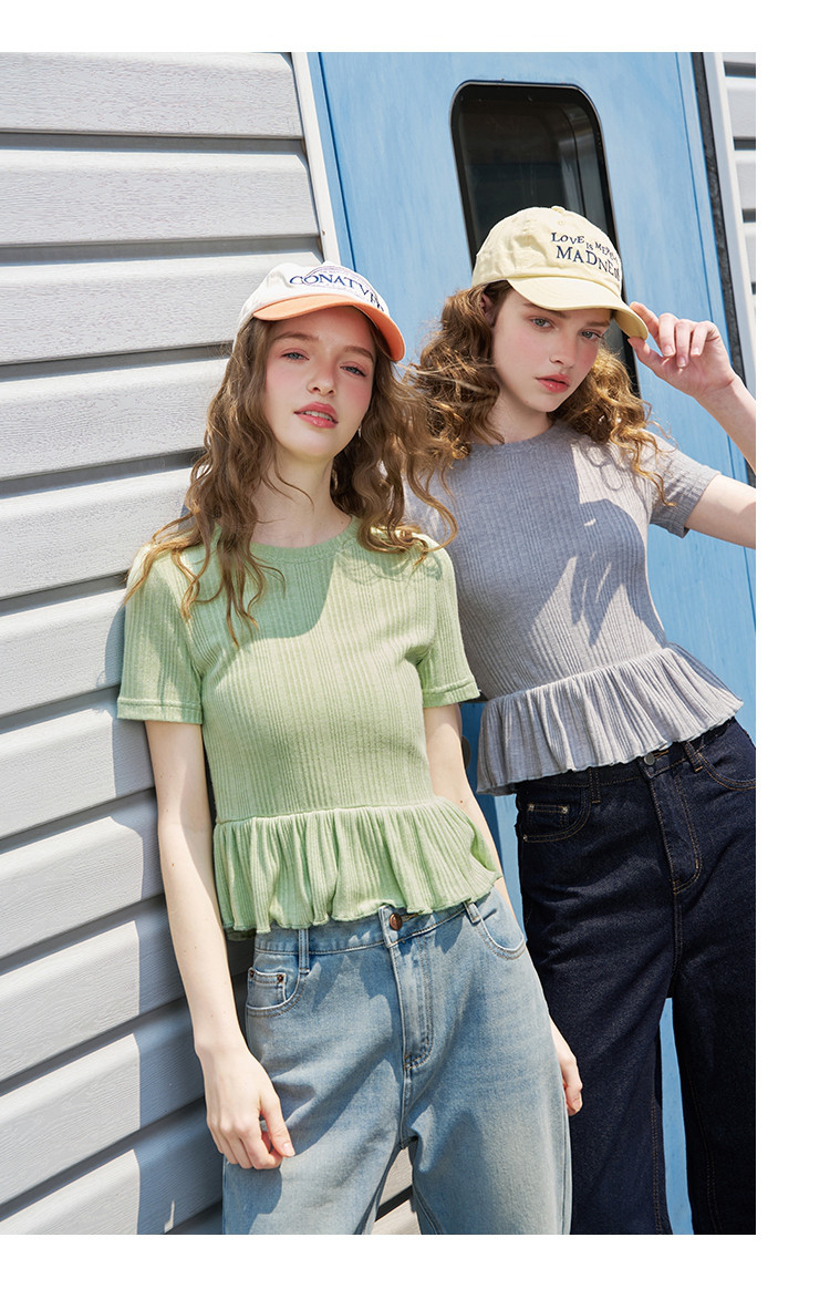 商品名称:叠穿显瘦芭蕾风内搭小个子短袖上衣2025夏季休闲百搭女式T恤 603805
