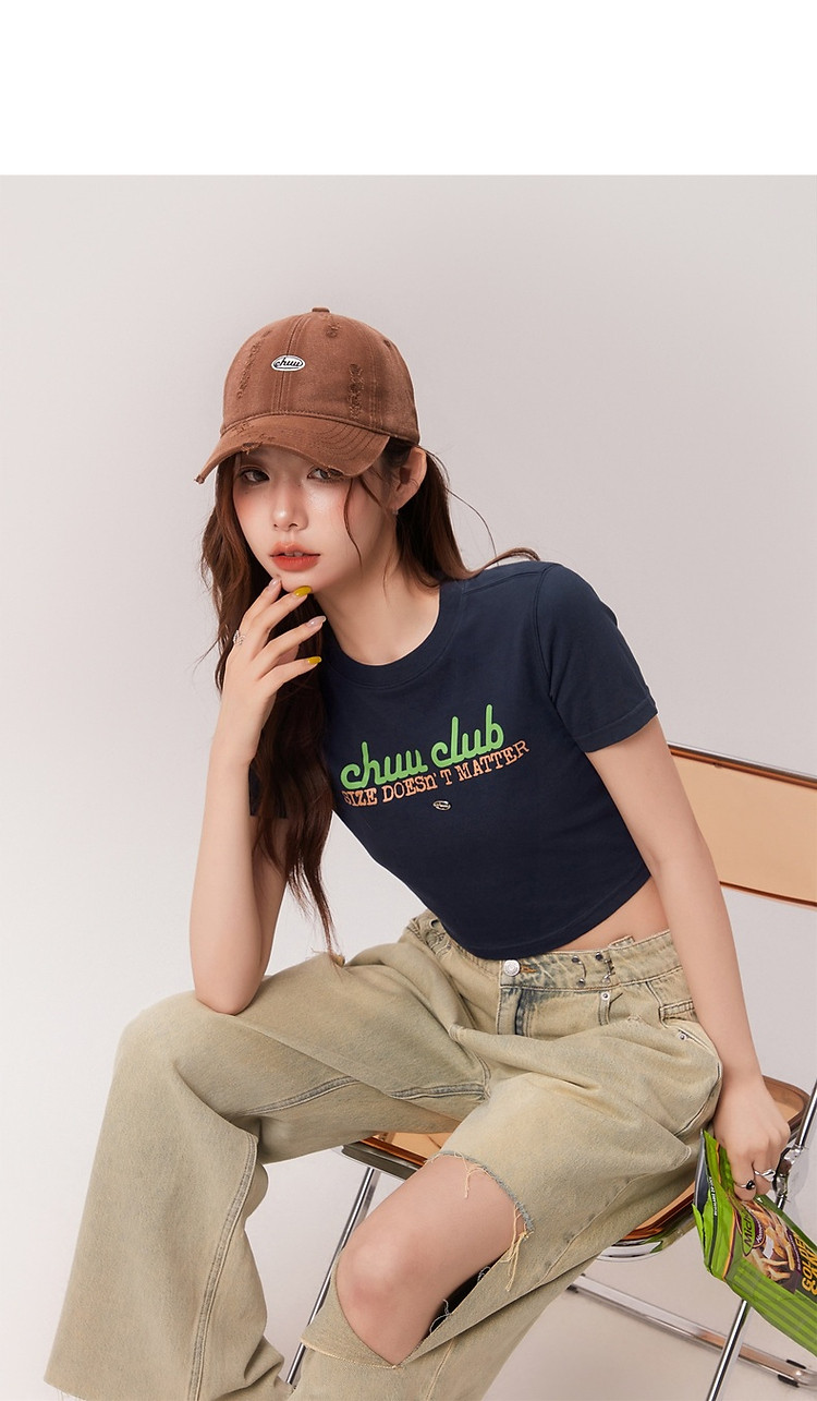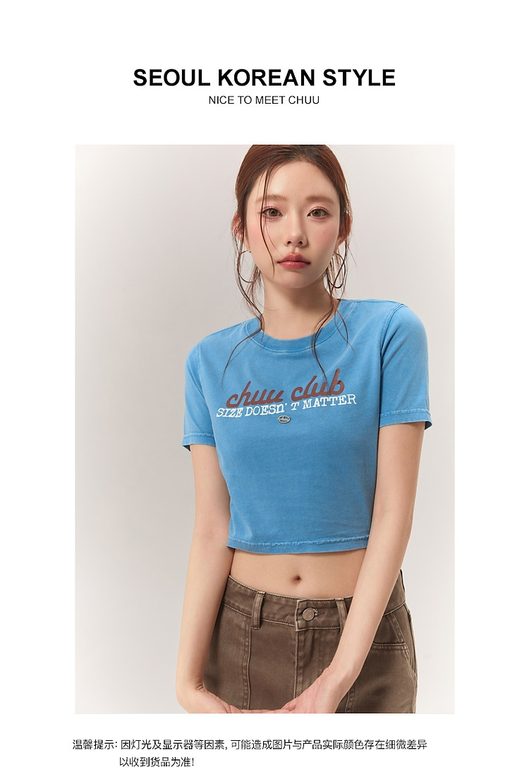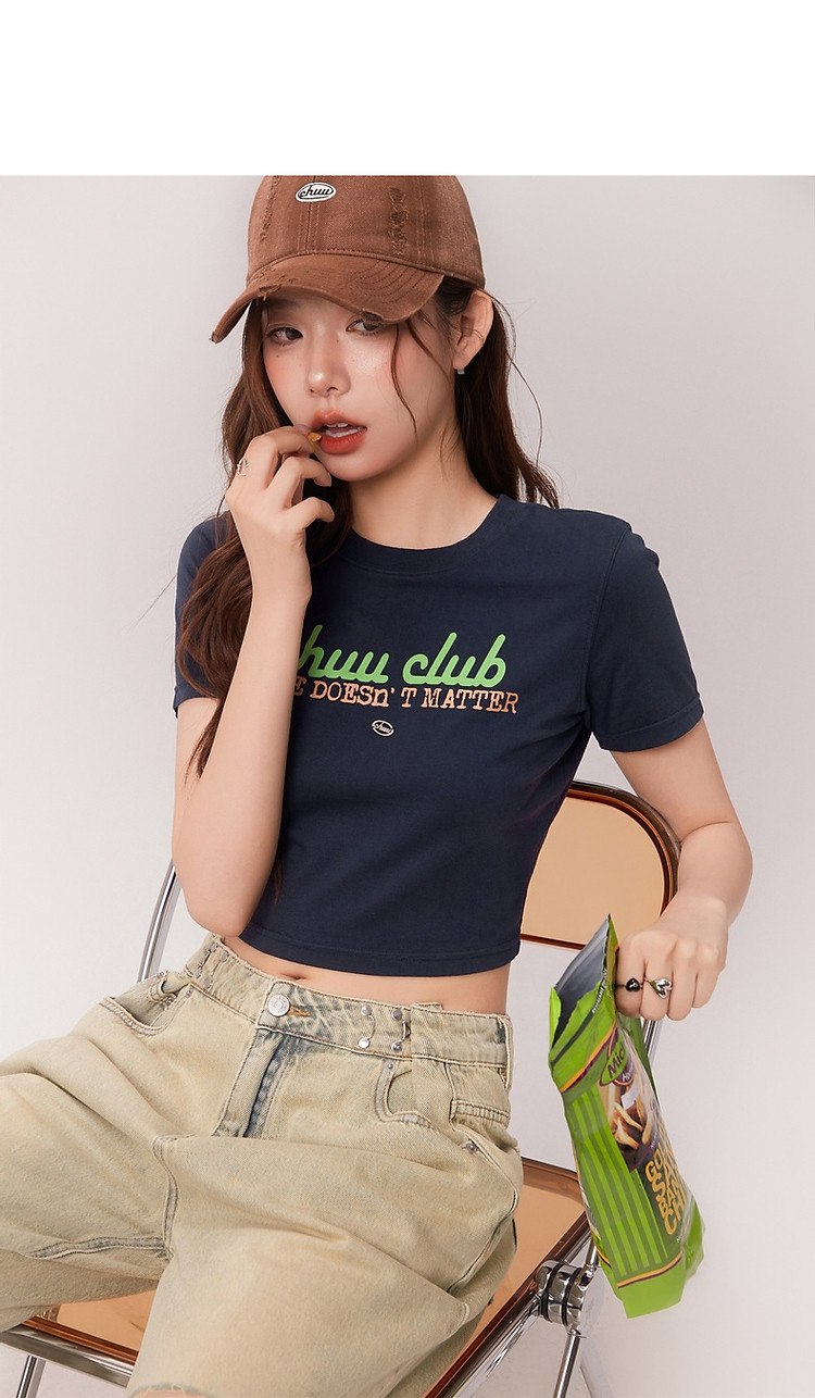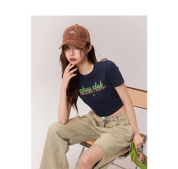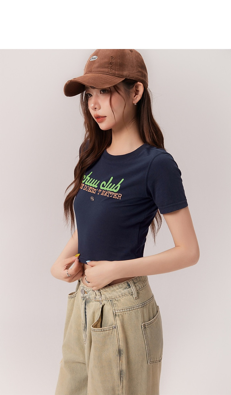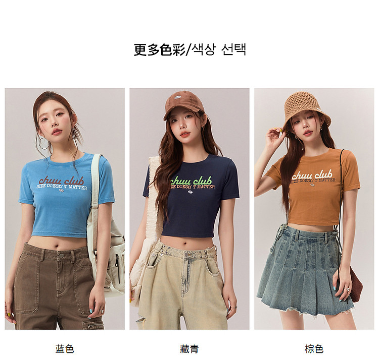商品名称:字母印花短袖T恤女2025夏basic风纯色套头修身 487443