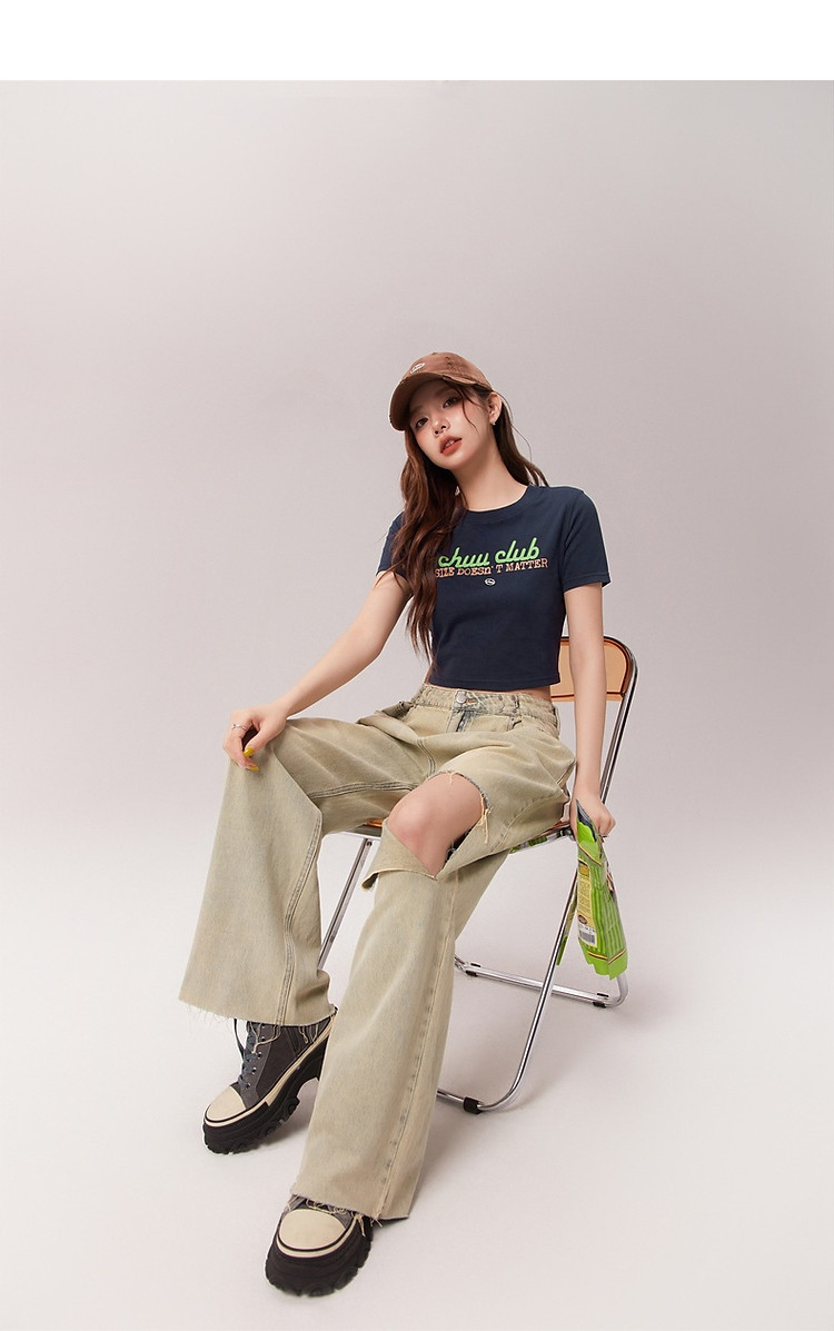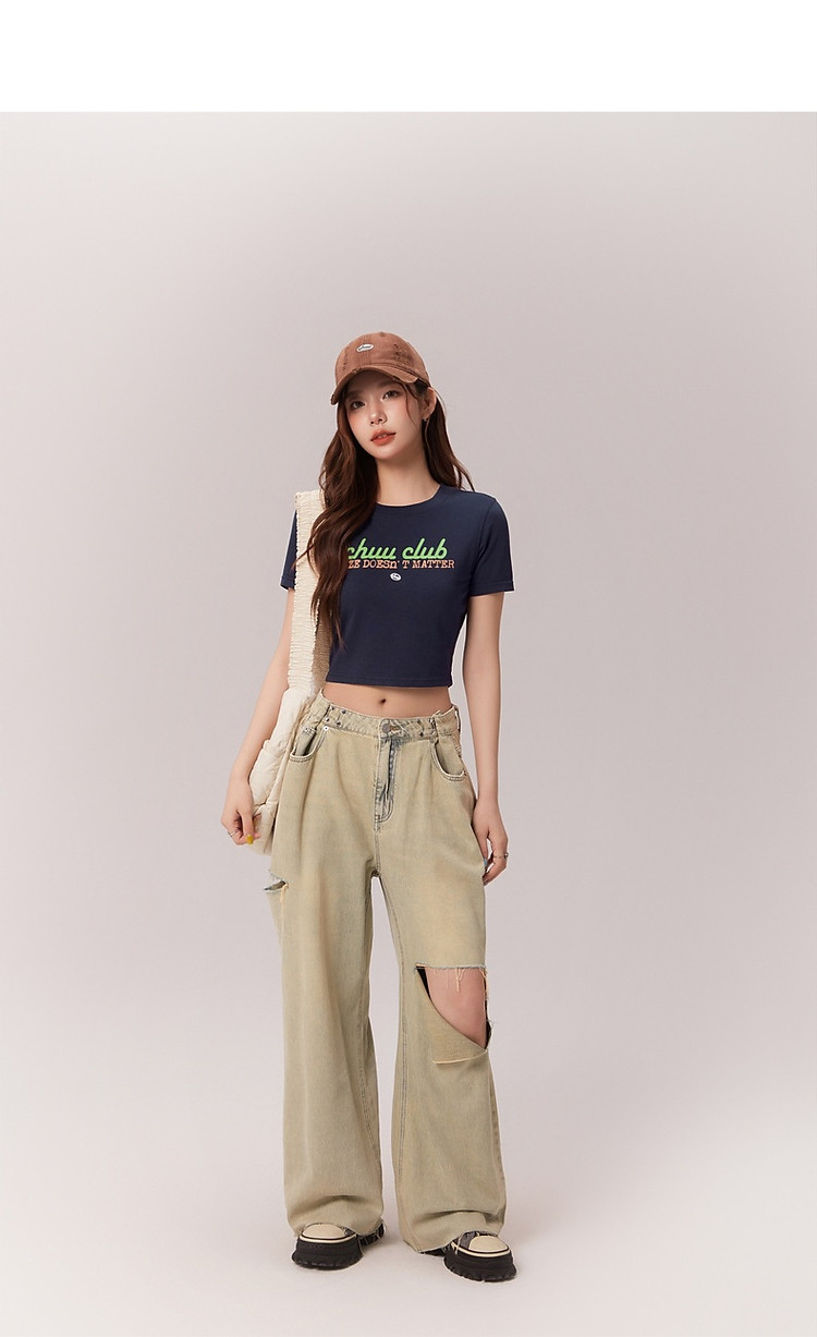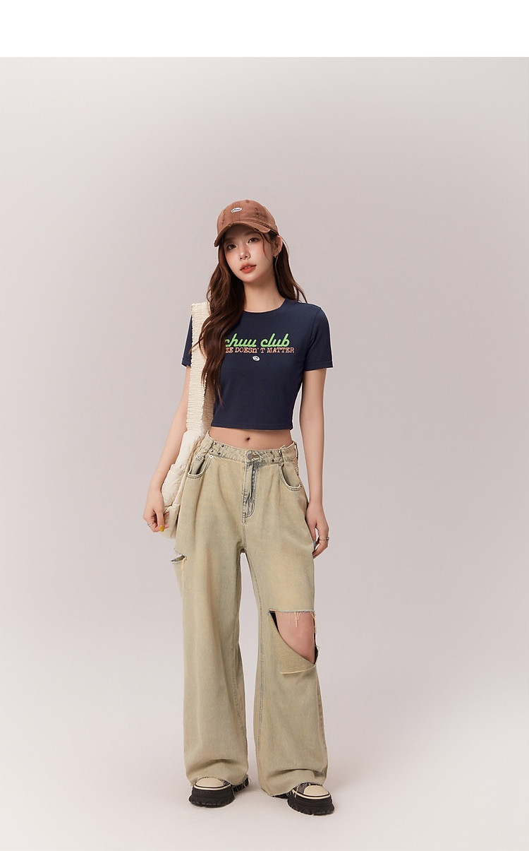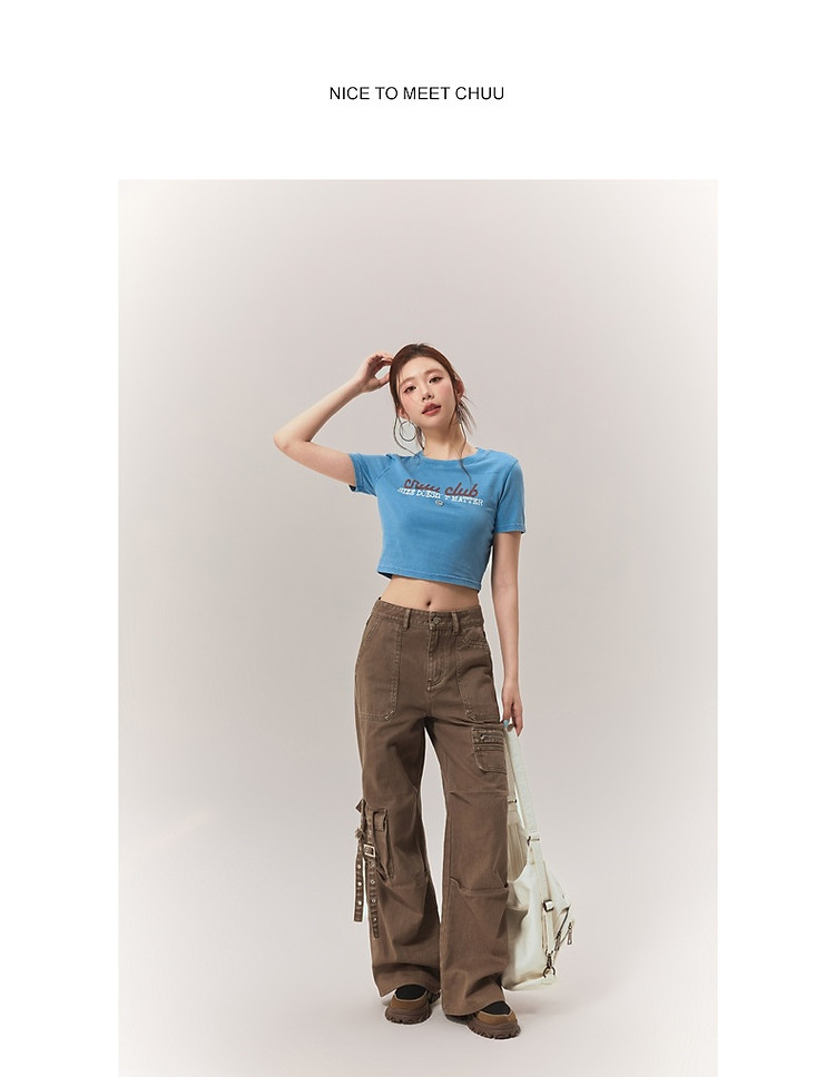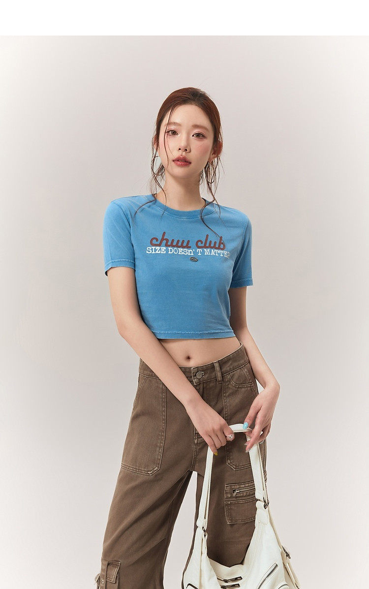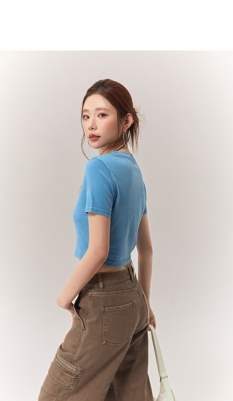 商品名称:字母印花短袖T恤女2025夏basic风纯色套头修身 487443