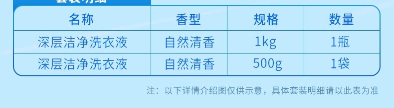 商品名称:蓝月亮 自然清香深层洁净洗衣液 1kg*1瓶+500g*1袋