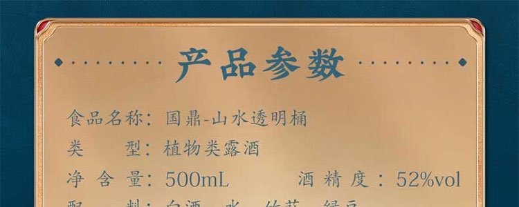 商品名称:五粮液 仙林生态 国鼎山水透明桶 52度白酒 500ml*2瓶配礼袋