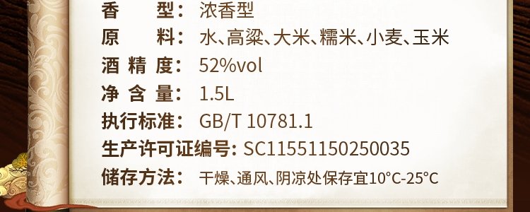 商品名称:五粮液 百家宴稀缺大坛酒 52度浓香型白酒 1500ml*1坛