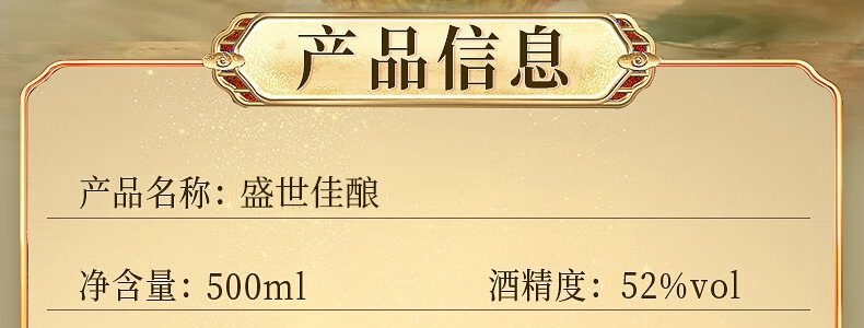 商品名称:五粮液 盛世佳酿麒麟送福 52度浓香型白酒 500ml*2瓶