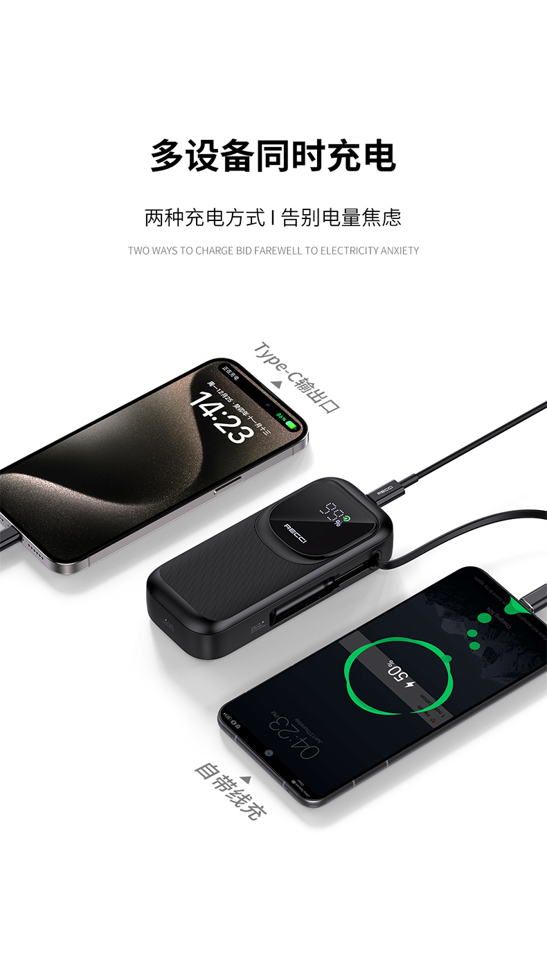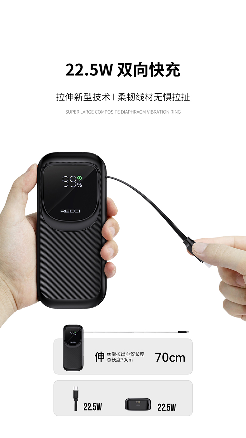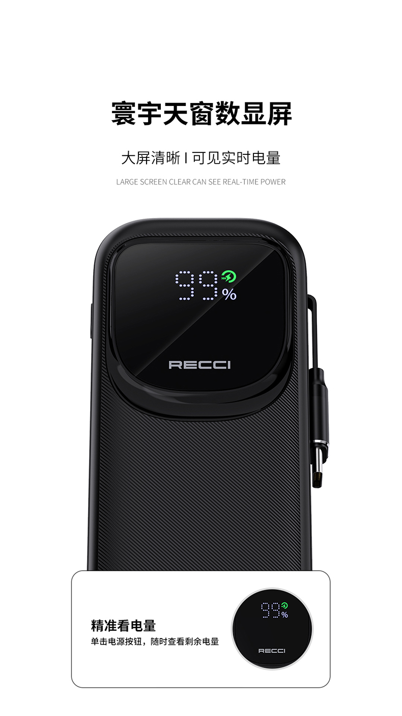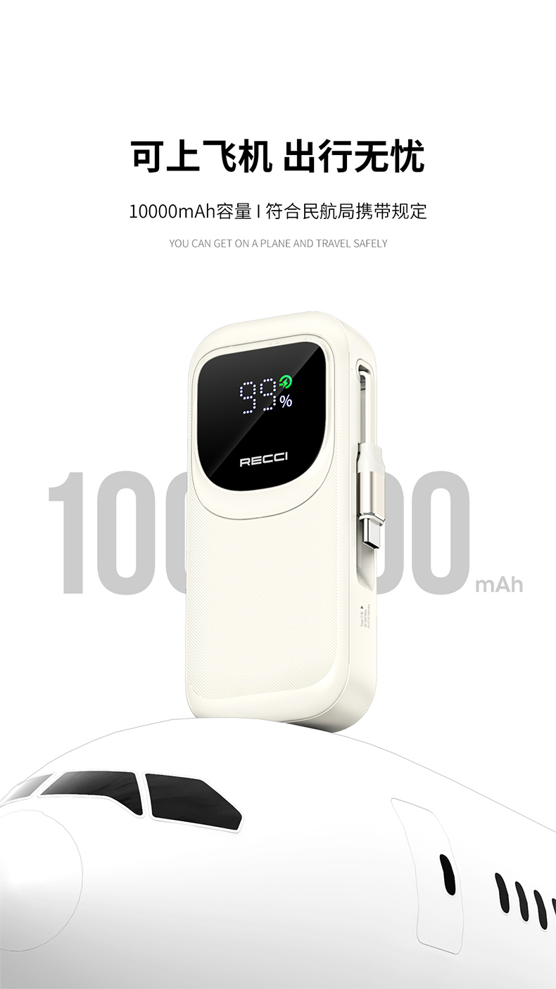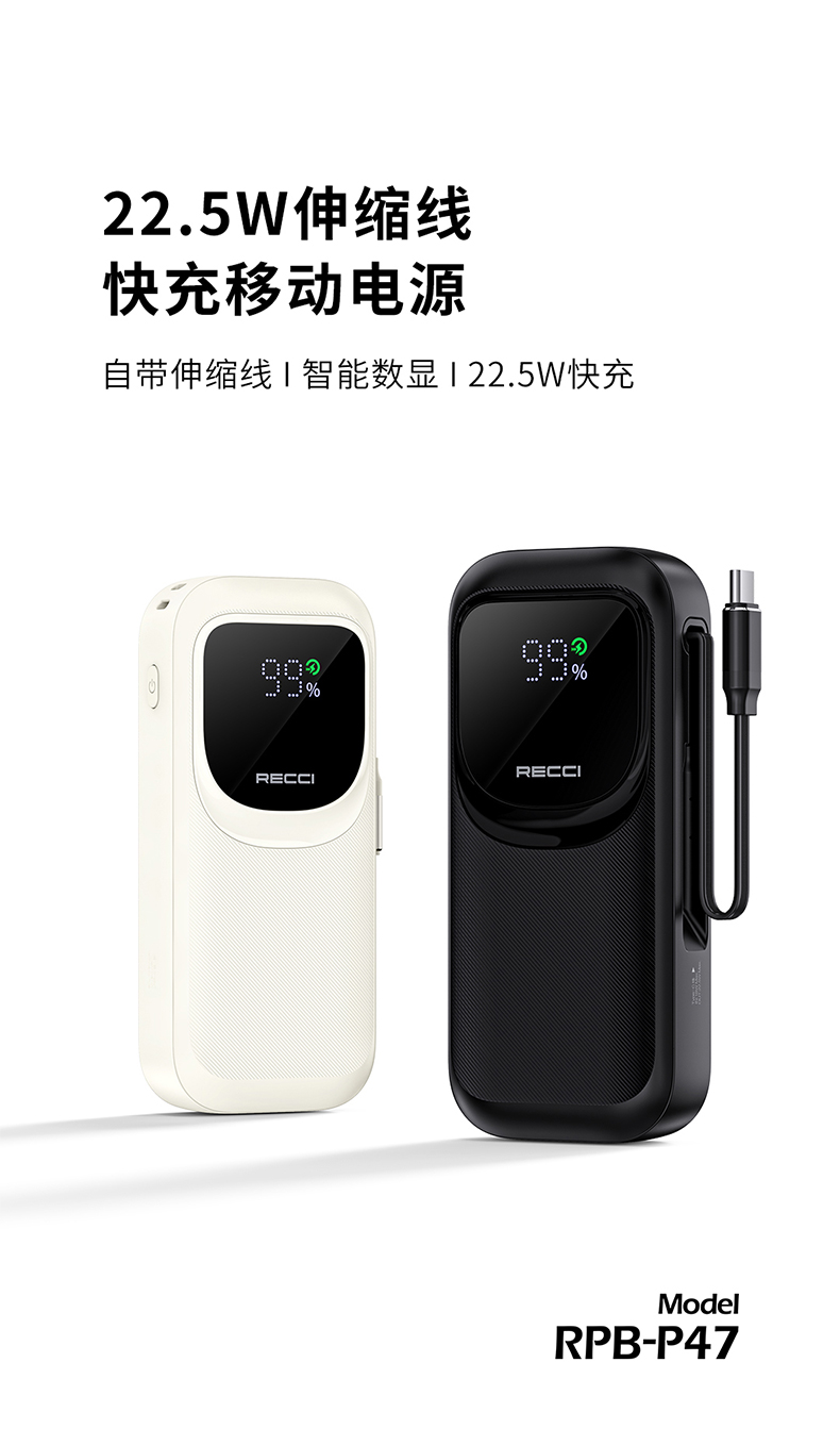 Recci/锐思10000mAh缩线快充移动电源RPB-P47
