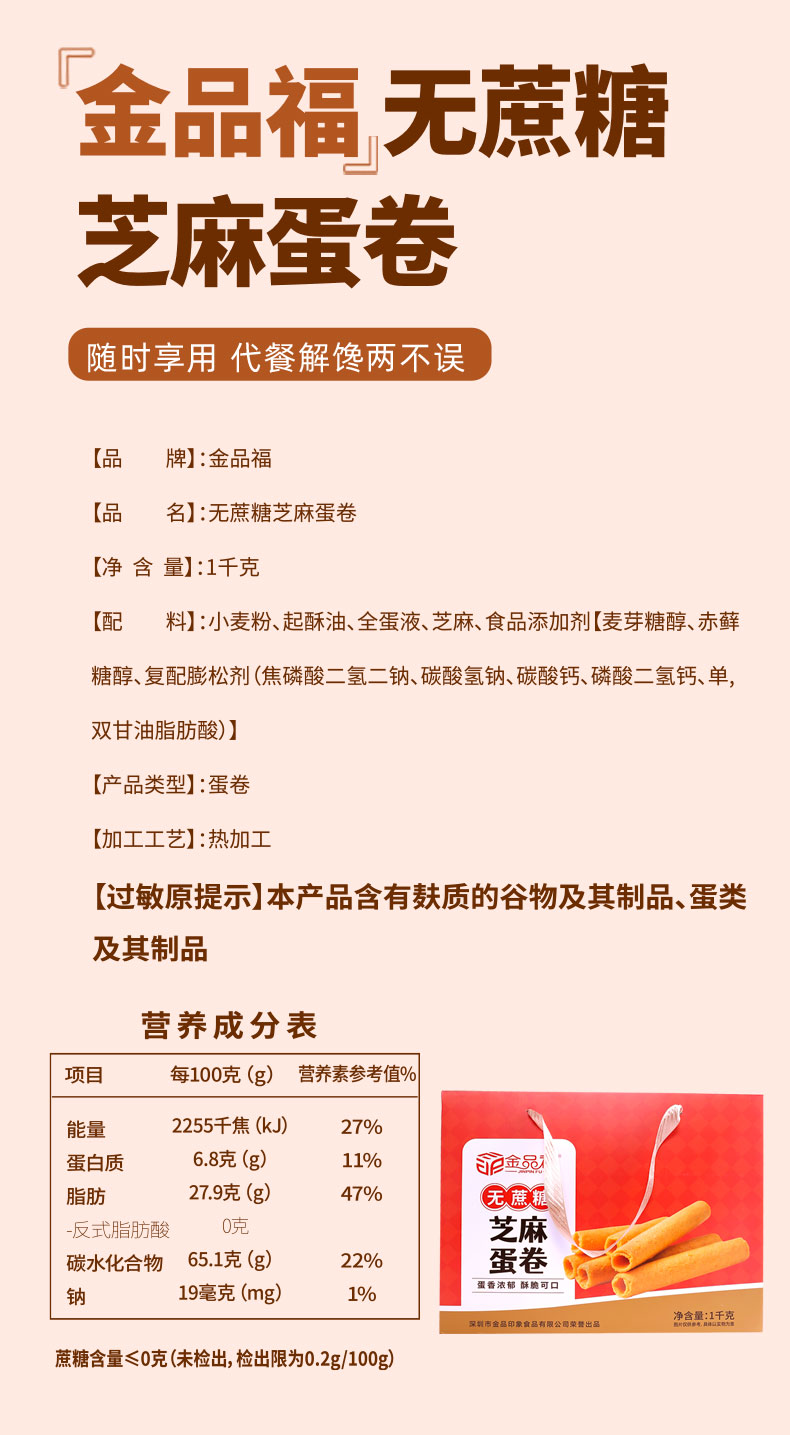 商品名称:金品福无蔗糖芝麻蛋卷1kg
