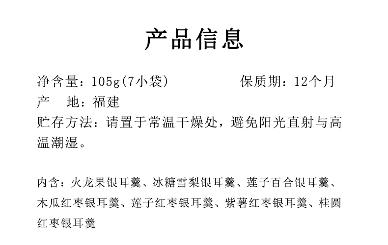 商品名称:盛耳柒小耳冻干银耳羹105g