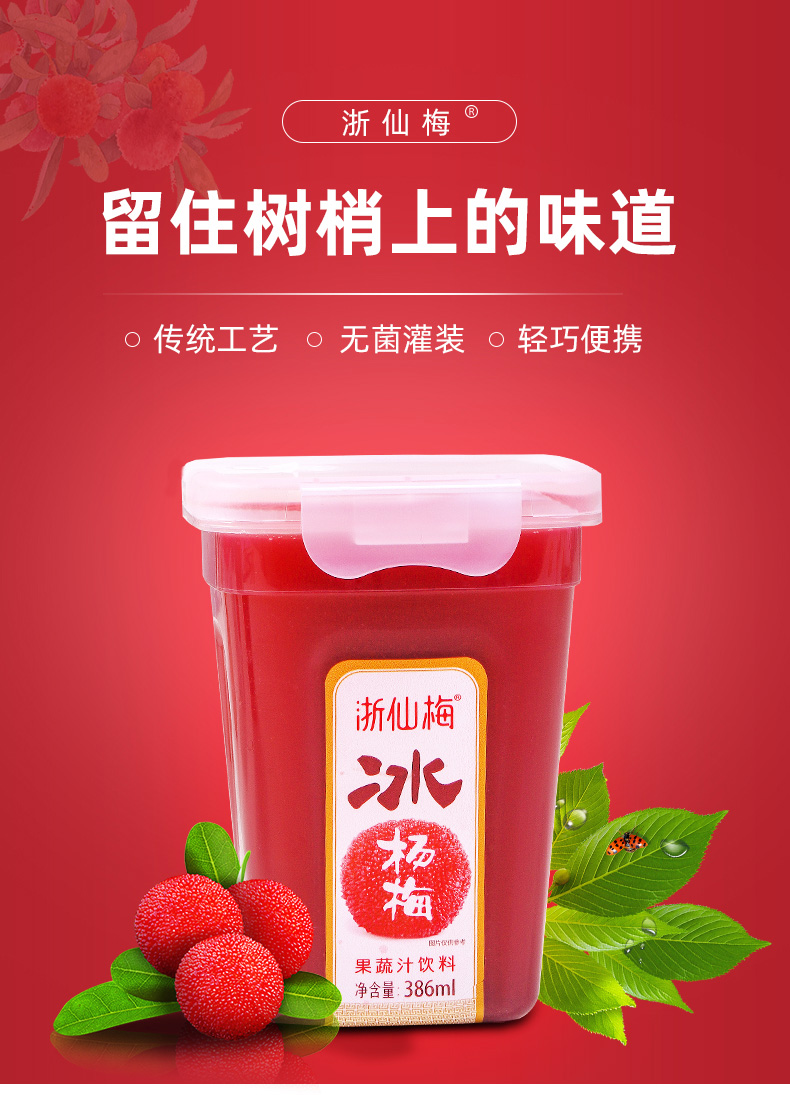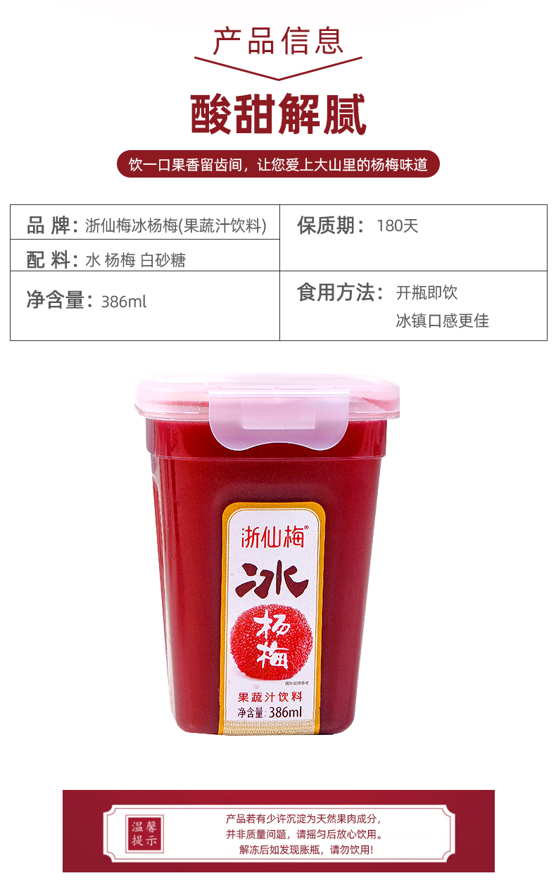 商品名称:浙仙梅冰杨梅果蔬汁饮料386ml*6瓶