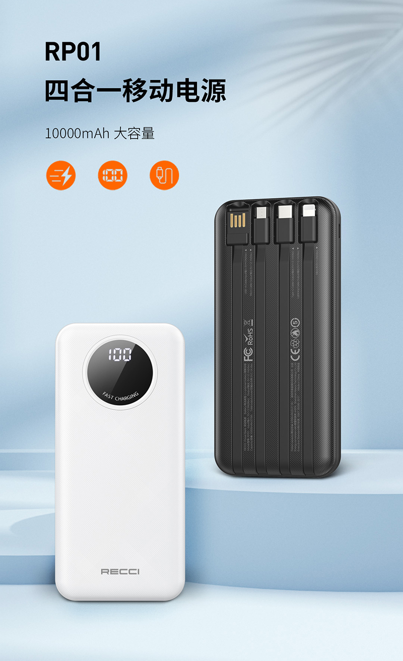 Recci/锐思10000mAh四合一移动电源RP01