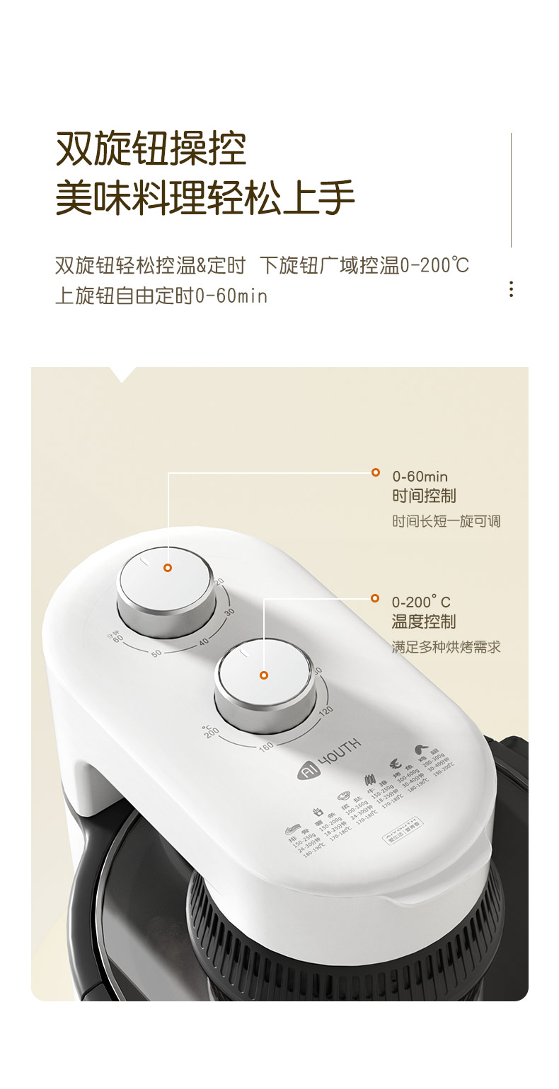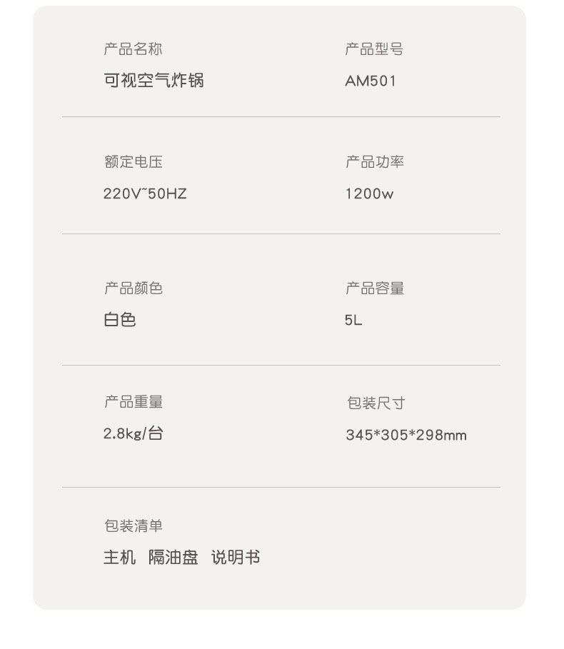 商品名称:AIYOUTH/艾青春5升可视空气炸锅AM501