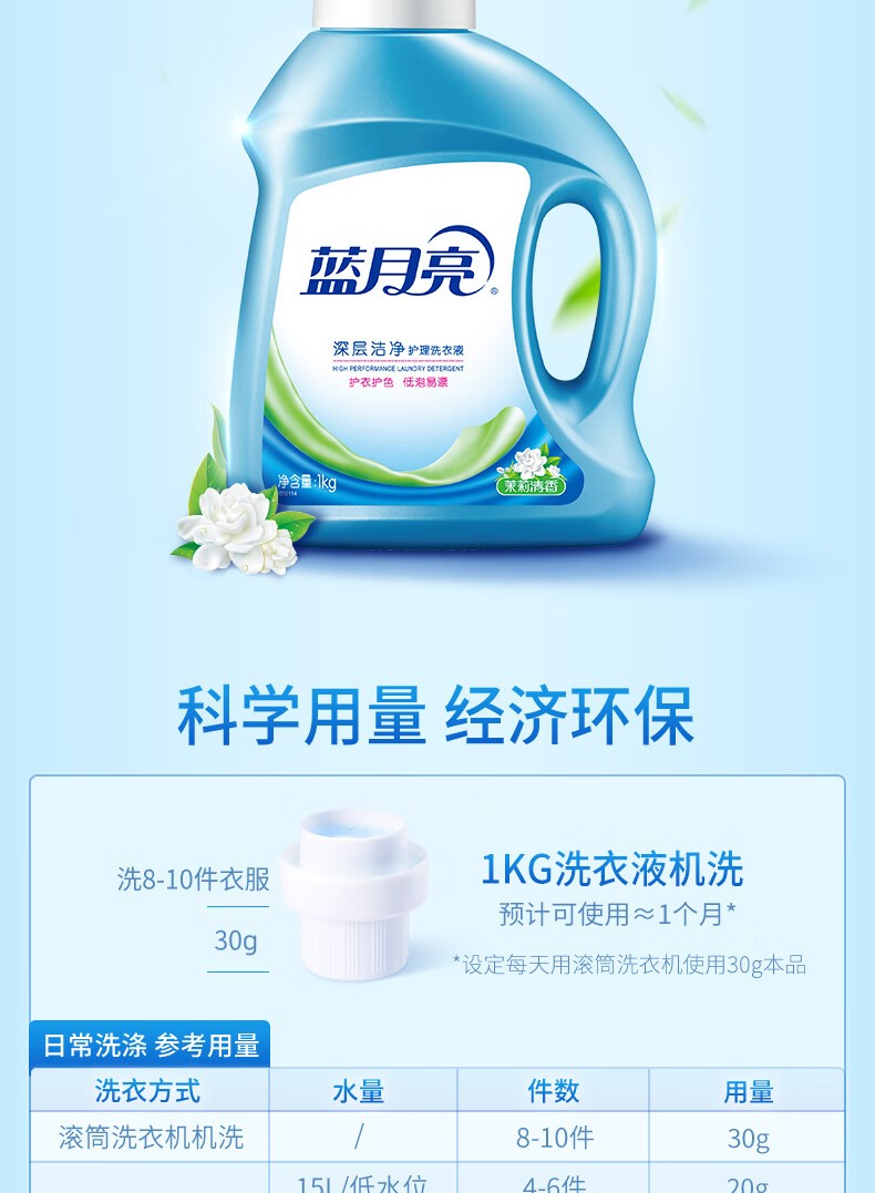 商品名称:蓝月亮洗衣液-茉莉清香1kg+蓝月亮袋装洗衣液-茉莉清香500g+心相印鸿运来抽纸3层*100抽*4包