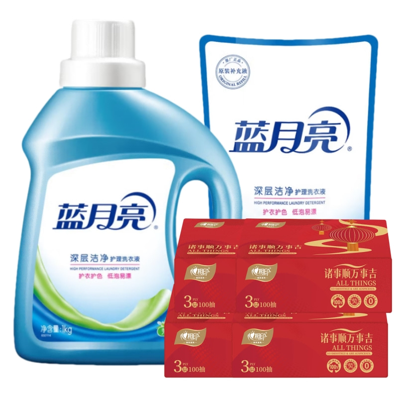 蓝月亮洗衣液-茉莉清香1kg+蓝月亮袋装洗衣液-茉莉清香500g+心相印鸿运来抽纸3层*100抽*4包