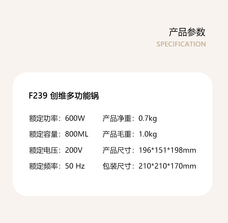 商品名称:SKYWORTH/创维0.8升多用途锅F239